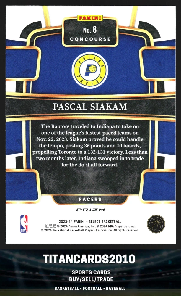 2023-24 Select Concourse Blue Cracked Ice Pascal Siakam Indiana Pacers NBA