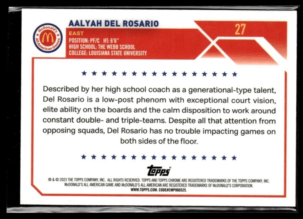 2023-24 TOPPS CHROME MCDONALD'S ALL AMERICAN AALYAH DEL ROSARIO MCDONALD'S #27