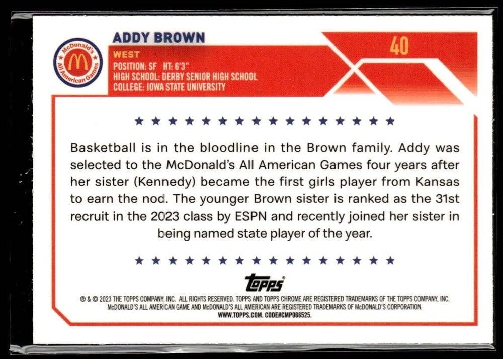 2023-24 TOPPS CHROME MCDONALD'S ALL AMERICAN ADDY BROWN MCDONALD'S #40