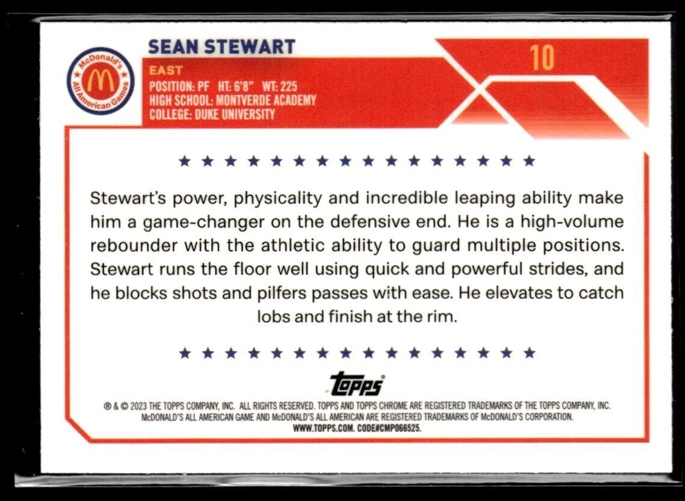 2023-24 TOPPS CHROME MCDONALD'S ALL AMERICAN SEAN STEWART MCDONALD'S #10