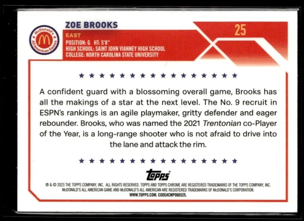 2023-24 TOPPS CHROME ZOE BROOKS MCDONALD'S ALL AMERICAN #25