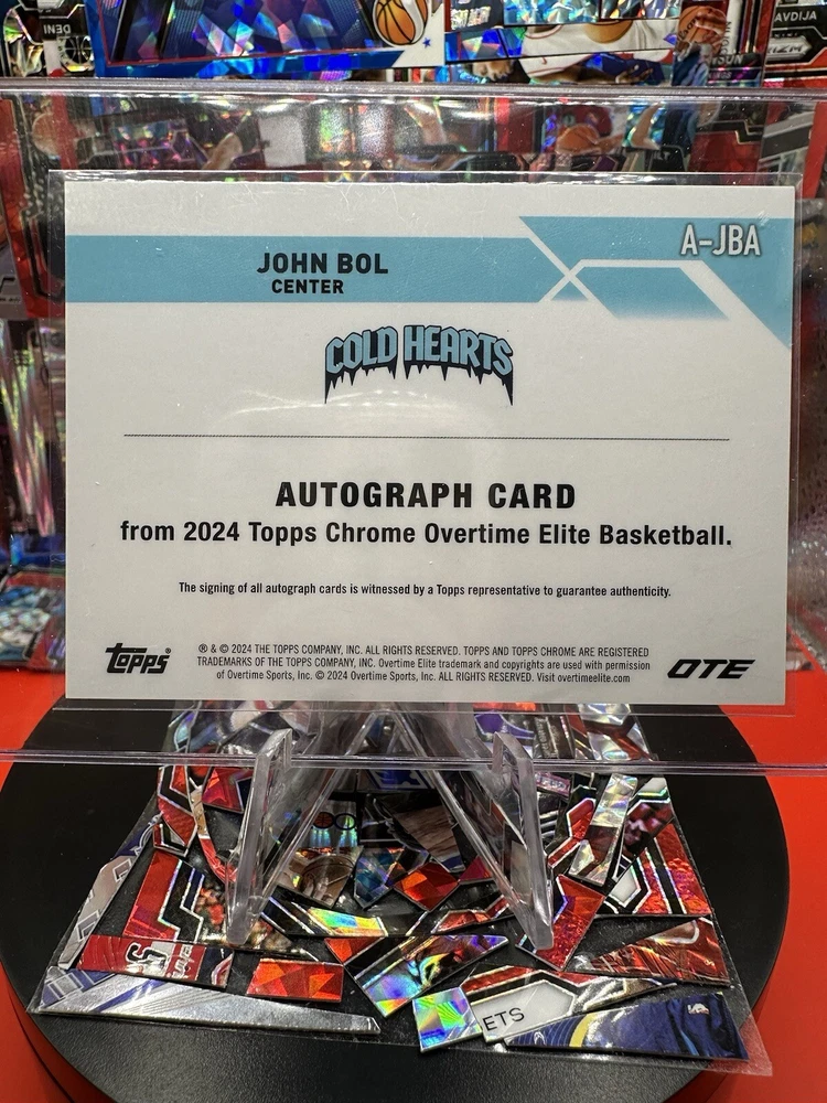 Autographed:YesPlayer/Athlete:John BolSigned By:John BolLeague:National Basketball Association (NBA)Sport:BasketballCard Size:StandardSet:2023-24 Topps Chrome OTEMaterial:Card StockAutograph Format:Label or StickerNumber of Cards:9Season:2023-24Vintage:NoType:Sports Trading CardYear Manufactured:2023Features:Box Topper, Insert, Rookie, Serial Numbered, Short PrintManufacturer:ToppsCountry/Region of Manufacture:United States
