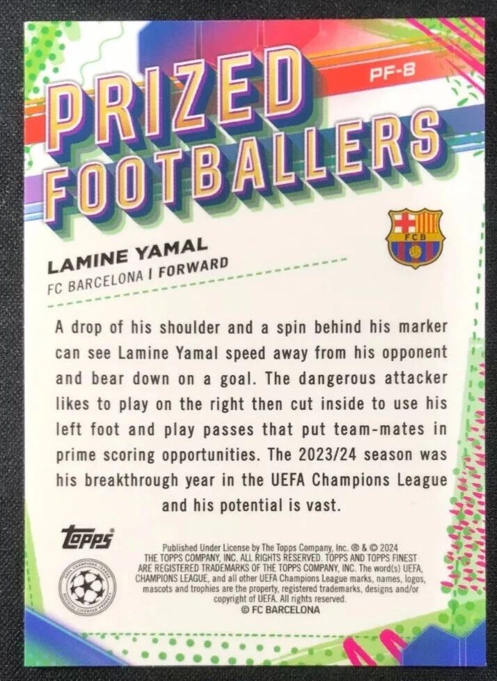2023-24 Topps Finest Lamine Yamal #PF-8 UCL UEFA Prized Footballers Rookie RC