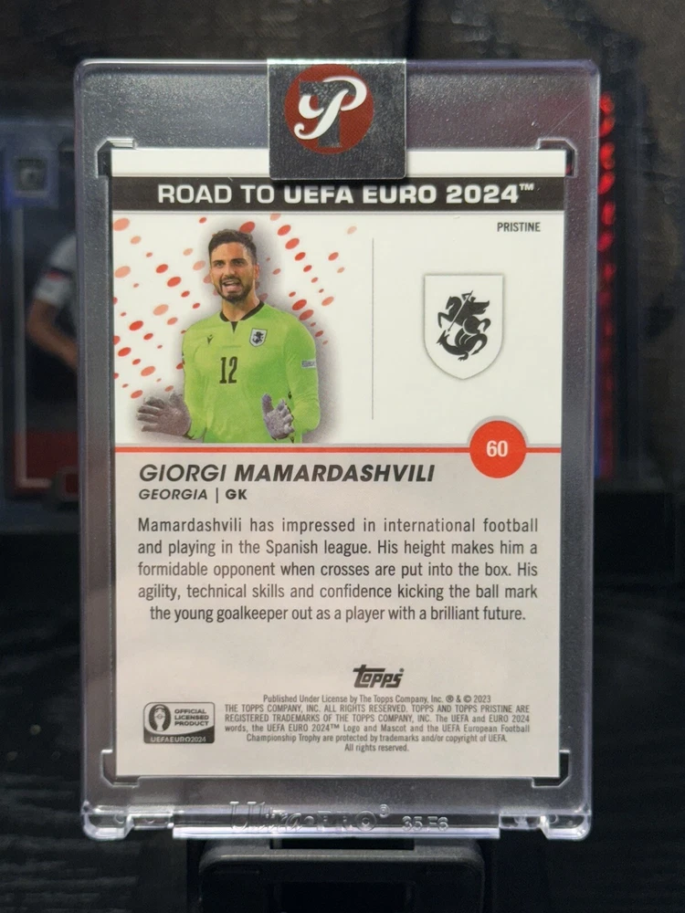 Parallel/Variety:Blue RefractorVintage:NoTeam:GeorgiaMaterial:Card StockCard Size:StandardAutographed:NoManufacturer:ToppsSport:SoccerSet:2023 Topps Pristine Road to UEFA Euro 2024Season:2023-24Player/Athlete:Giorgi MamardashviliType:Sports Trading CardCard Number:60Print Run:75Original/Licensed Reprint:OriginalLanguage:EnglishYear Manufactured:2024Card Name:Pristine RefractorFeatures:Chase, Parallel/Variety, Serial Numbered, Short PrintLeague:UEFA European Championships