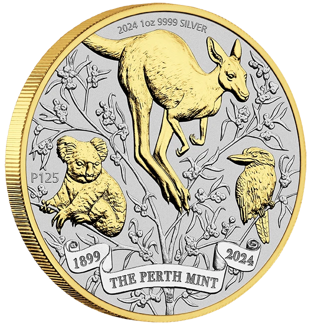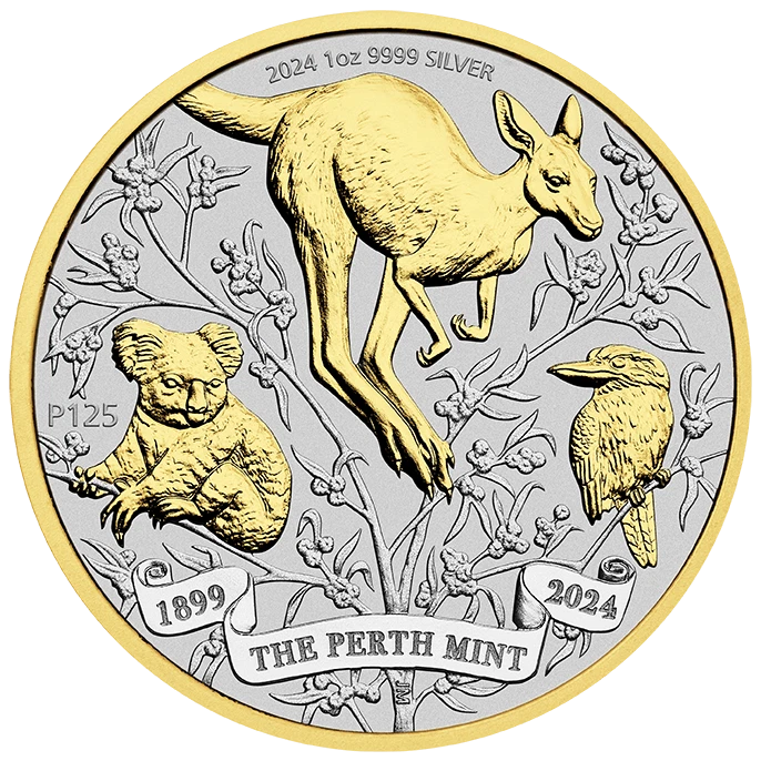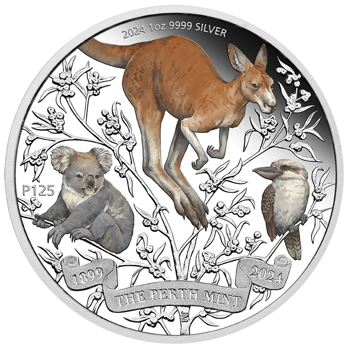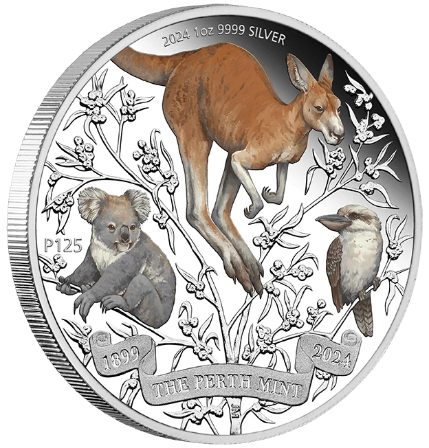 Seller Notes:“Uncirculated”Grade:UngradedDiameter:40.90 mmCountry/Region:AustraliaYear:2024Coin:2024 Australia Perth Mint 125th Ann. Kangaroo 4 x 1 oz Silver TypFineness:0.9999Composition:SilverTotal Precious Metal Content:4 oz (4 x 1 oz)Modified Item:NoBrand:Perth Mint 125th AnniversaryStrike Type:BU, Colorized, Gilded, ProofCertification:Mint CertifiedCirculated/Uncirculated:UncirculatedDenomination:4 x $1 AUDMintage:2,500Shape:RoundPrecious Metal Content per Unit:4 oz (4 x 1 oz)Packaging:Display BoxBrand/Mint:Perth Mint