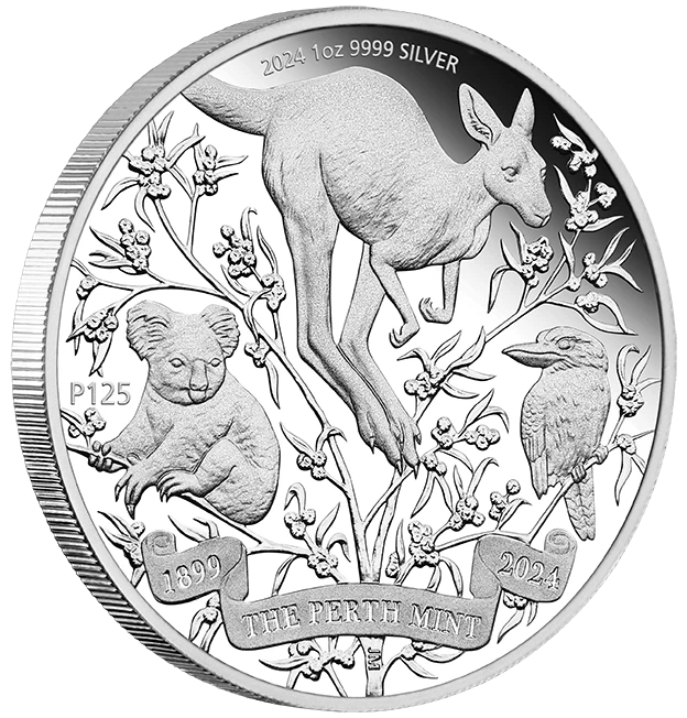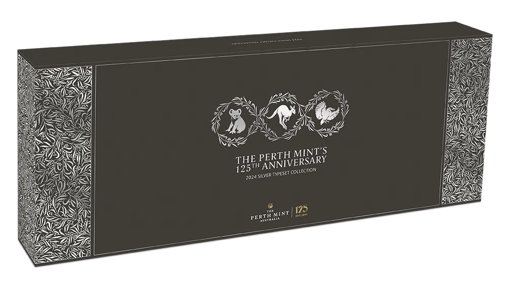 Home2024 Australia Perth Mint 125th Ann. Kangaroo 4 x 1 oz Silver Typeset Collection