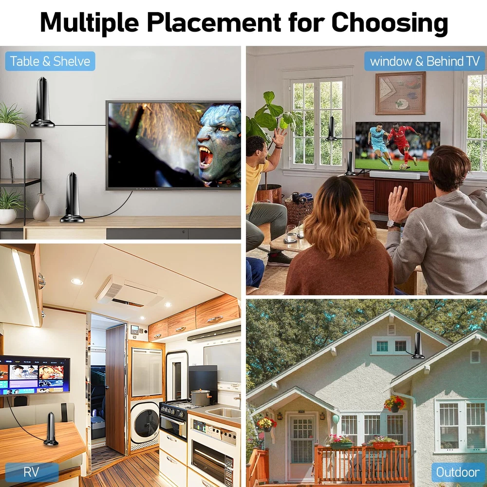 tv antenna tv antenna indoor antenna for smart tv tv antenna for local channels indoor tv antenna best rated 2024 digital antenna for smart tv indoo tv antenna for smart tv indoor antenna for tv without cable hdtv antenna indoor indoor antenna for smart tv indoor antenna strongest indoor tv antenna tv antenna outdoor long range hdtv antenna hdtv antenna for smart tv long range tv antenna indoor tv antenna outdoor antenna for smart tv tv antenna for smart tv 950+ Miles Long Range Reception: Strong and stable signal ! This indoor tv antenna can receive the free channels you want over 950+ long range distances! Our antenna for smart tv with a 2024 upgraded built-in IC chip for access to more free local channels. This is the best tv antenna with technology, bringing clear pictures, low noise, and access to most TV signals with high gain. Much Local Channels & HD Image: Say goodbye to high TV bills! Just enjoy the HDTV free channels with this TV antenna! Owning this digital antenna can save you MUCH MORE US dollars every year. The hdtv antenna starts to access the news, sitcoms, kids, and sports programs! The indoor antenna for smart tv for you with 0 COST channels, including ABC, CBS, NBC, PBS, Fox, Univision, CW,est. Multiple Placement: This antenna for tv can be placed almost anywhere in your home! This indoor antenna is styled and suitable for all room types. It can be placed directly on desktop, wall, or window, living room, bedroom, or outdoor, it doesn't take up space and doesn't need to worry about being damaged. Warm tips: The signal for window position is the strongest and most stable! Upgraded Amplifier & Strongest Signal: You will get a more stable signal even in bad weather ! The amplifier and chip of this antenna are newly upgraded by our team. It has double the signal reception capacity! Owing the best tv antenna you can receive free channels from a 360° direction. And the coaxial cable is long enough for you to easily install in windows and outdoors. Easy to install: Say Goodbye to Installation trouble!The antenna for TV are easy to install. Just connect to ANT/IN ports of HDTV or set-top box. And then turn on your TV search all the channels you want !!! BEST SERVICE: Best tv antenna - focuses on researching antennas and is responsible for every antenna. Our professional service team provides the best-guaranteed support to our customers. With any problem, please email us first. Your problem will be replied within 24 hrs. Enjoy a high-quality antenna with a good experience.