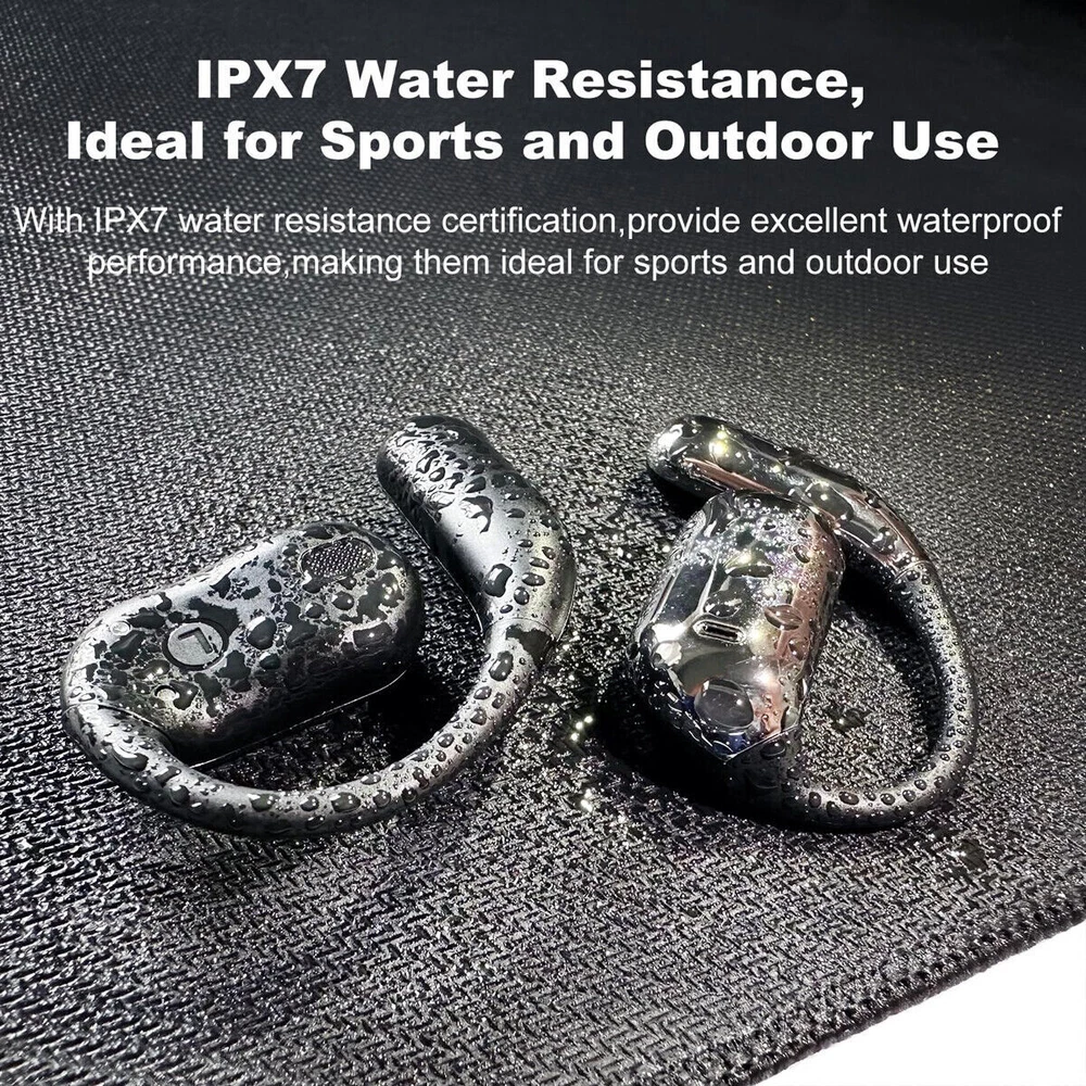 Features : Open Over Ear Design : Open Ear Bluetooth Headphones feature a revolutionary ergonomic design, allowing you to enjoy your favorite music while staying aware of the surrounding environment. With this innovatively designed sports open earbuds, you can hear external sounds clearly without compromising on comfort. The open bluetooth earphones has a unique shape, without being plugged into the ear canal, no longer pain your ear because of long time wearing. Bluetooth 5.4 Enhanced Connectivity : Experience faster and more stable transmission speeds with bluetooth 5.4 technology. Our wireless earphones offer seamless pairing and connection with your smart devices, ensuring high quality sound with ultra-low latency and perfect synchronization. Enjoy your music without any signal loss or interruptions. The bluetooth headphones are equipped with flexible touch control, enabling you to perform all functions with a gentle tap. 48H Playtime & LED Digital Display : Open ear bone conduction headphones have up to 150 hours of standby time , and 8 hours of continuous play time on a single charge. The included lightweight and compact magnetic charging case provides an additional 40 hours of playtime, ensuring you never run out of music. The case can be fully charged in just 1 hour via the fast charging Type-C cable (including). High Fidelity Clear Calls and Wide Compatibility : Equipped with advanced dual built-in microphones, over ear bluetooth earbuds provide crystal clear hands-free calls. Additionally, the speaker delivers powerful, high-quality sound for an immersive audio experience. The wireless headphones bluetooth can be effortlessly connected to nearly any Bluetooth-enabled audio device, providing you with the versatility to use various types of devices as needed. Lightweight and Secure Fit: Our open Ear Headphones are incredibly lightweight. Crafted from premium soft silicone material.With our original gravity balanced design, the over-ear earbuds evenly distribute their weight around your ears, reducing pressure on a single point. The multi-point support system evenly distributes the weight on your ears to prevent them from falling off, making them perfect for running, fitness activities, meetings, or outdoors. Specification: wireless version: V5.4 Talk time: 7-8 hours Music playing: 7-8 hours Standby time: 150 hours Communication distance:≥10m Charging time of headset: about 1.5hour Headset battery capacity: 60mAh Battery capacity of charging chamber: 500mAh Frequency range: 2.40ghz-2.48-ghz Support agreement:A2DP1.3/HFP1.6 / HSP1.2/AVRCP1.6/D11.3 Package Included: 2 x Wireless earphones 1 x Charging case 1 x USB-C charging cable 1 x Quick Start Guide