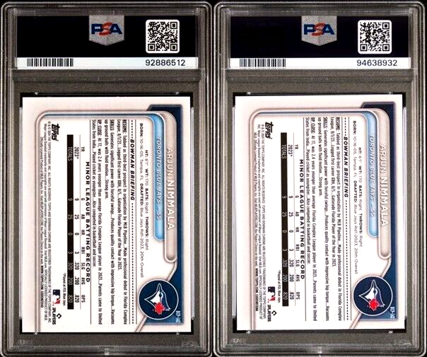 2024 Bowman Chrome 1st Prospects Arjun Nimmala BCP142 PSA 10 Gem Mint Lot of 2