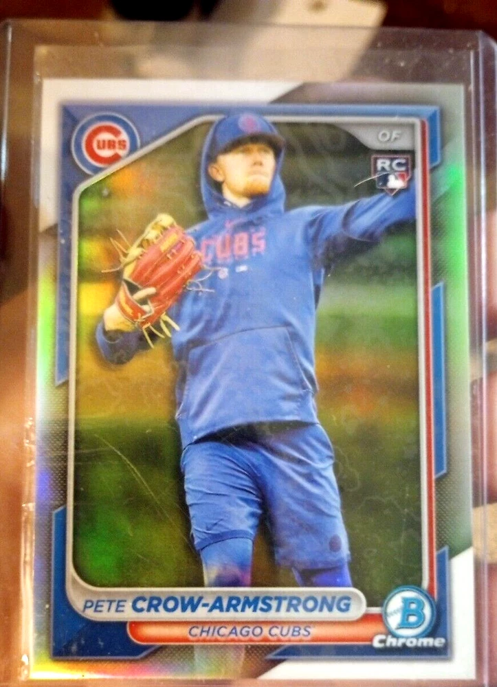 This rare and highly sought-after 2024 Bowman Chrome baseball card features the promising rookie Pete Crow-Armstrong in his Chicago Cubs uniform. The card is a true gem for collectors and fans alike, with its stunning Refractor Image Variation parallel/variety and short print status. As a Sports Trading Card, this 2024 Bowman Chrome card is a must-have for any serious collector. The card is exclusive and comes from the Image Variation SP insert set. It is a True Rookie IV Refractor card, with RC standing for Rookie Card. The card number is 45 and it was manufactured by Bowman in 2024. Don't miss your chance to add this rare card to your collection today