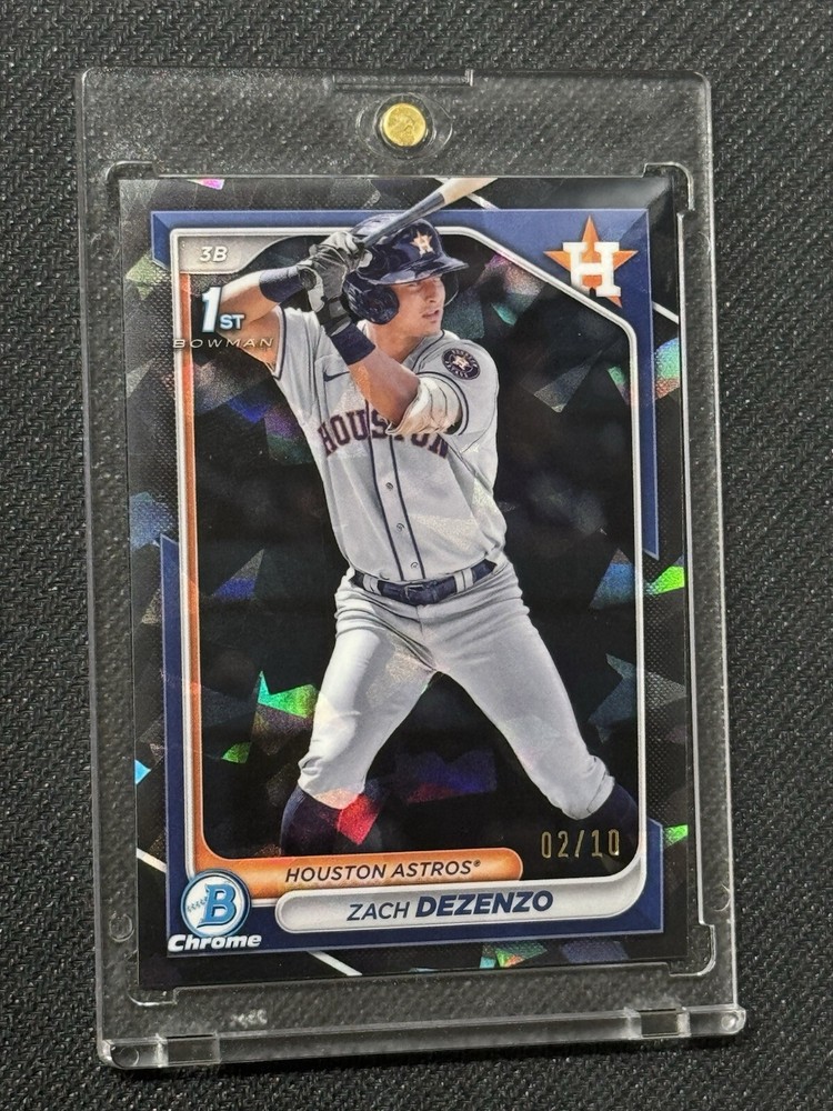 This card is an absolute gem for any serious collector! The 2024 Bowman Sapphire Zach Dezenzo Black /10 SSP is stunning—its sleek black design and ultra-rare serial numbering make it a standout piece. As a highly sought-after rookie card, it’s a fantastic investment for Astros fans and prospectors alike. The quality and exclusivity from Bowman elevate it above the rest. A true centerpiece for any collection!