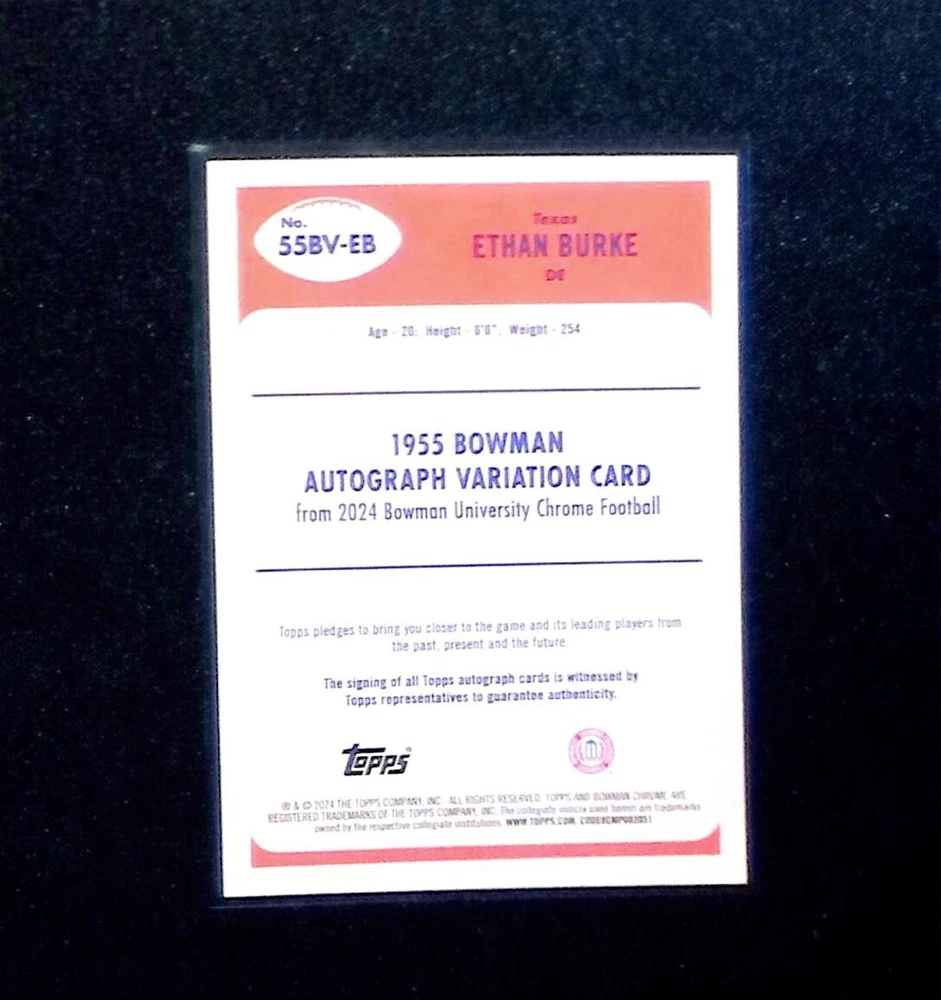 2024 Bowman University Chrome Ethan Burke Auto /99 RC #55BV-EB Texas