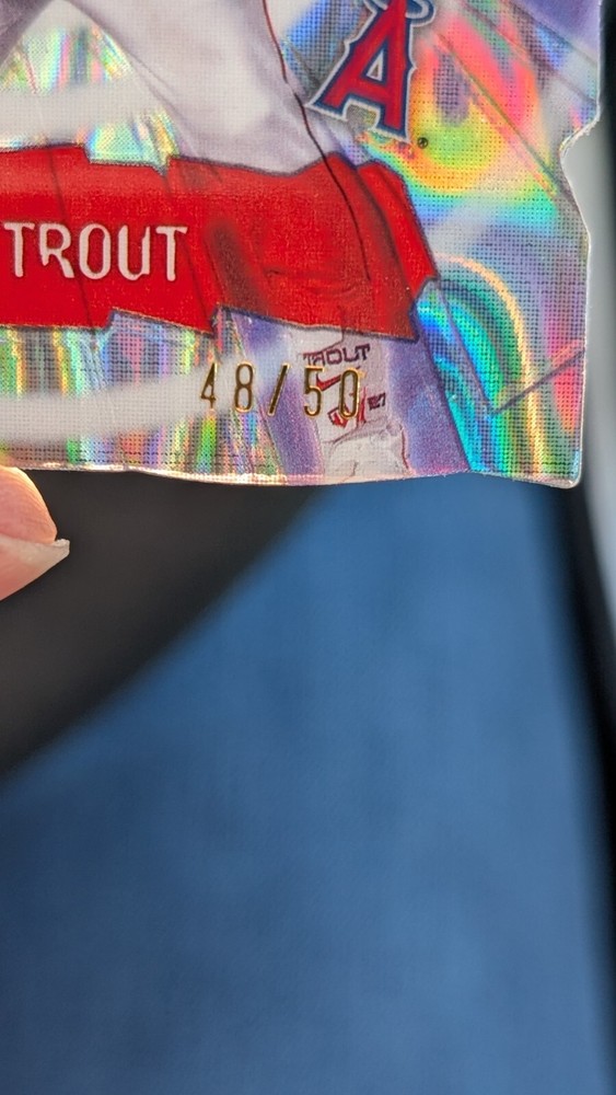 Elevate your baseball card collection with the 2024 Bowman's Best Mike Trout Impact Players Refractor. This limited edition card showcases the exceptional craftsmanship of Topps with its holographic design and premium card stock material. It features the iconic Los Angeles Angels player, Mike Trout, and is part of the esteemed Impact Players Bowman's Best insert set, promoting the game's most exciting and talented athletes. As a cherished piece of memorabilia, this card is numbered IP-1 and is a must-have for any serious collector or fan of the sport. Its chase card status, combined with its exclusivity as a promo and collectors edition, makes it a standout addition. Celebrate the MLB World Series season and Trout's impactful career with this stunning refractor card.