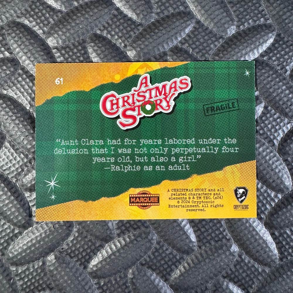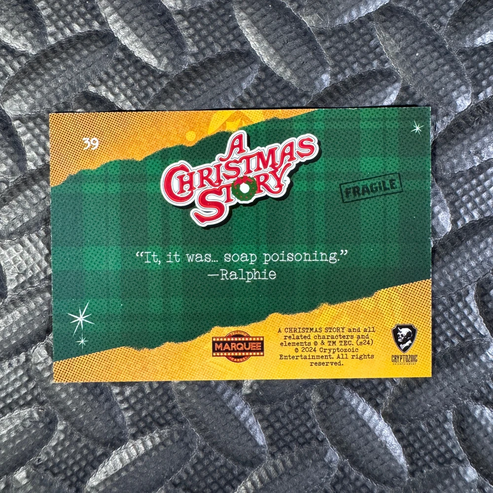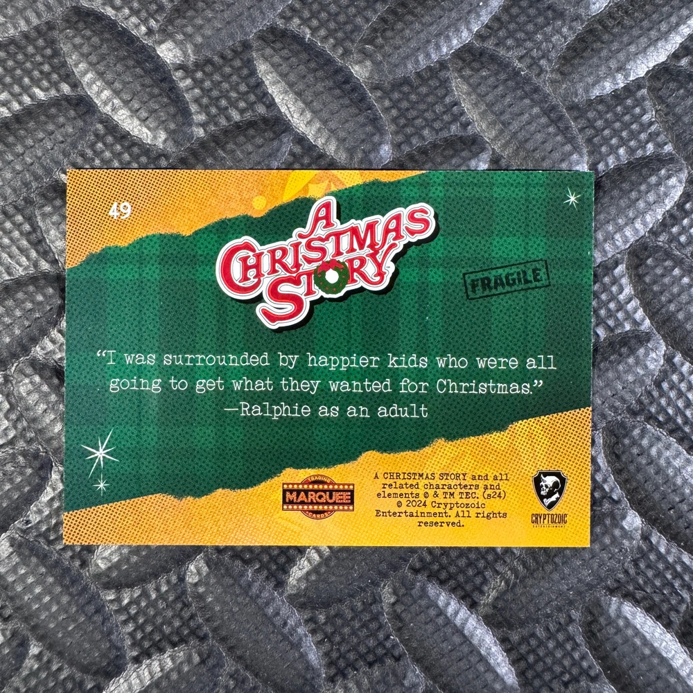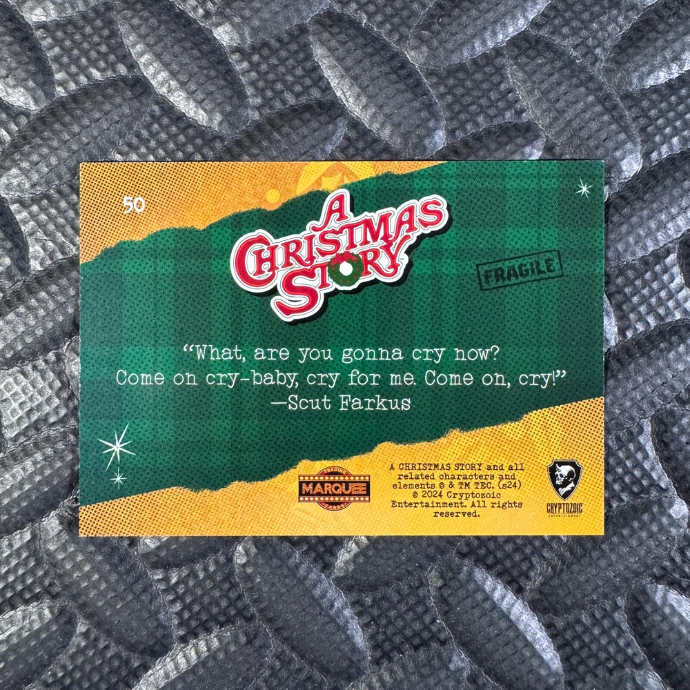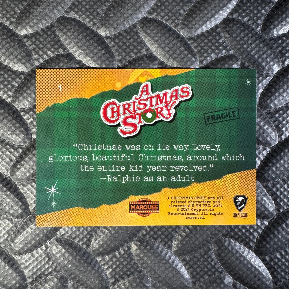 This listing is for your choice of any available 2024 Cryptozoic A Christmas Story base or chase card from the drop-down menu above. Also offering an empty wrapper, and an empty box! (empty box will be shipped flat, in a large envelope) Photos show front and backside of each card, be sure to scroll sideways to view front and backside photos! Check out my other listings for more single parallels from this same set. Any questions? Please ask before buying. International "USPS First Class Mail" will not include a tracking number for this item, if you would like a tracking number please choose the "eBay International Standard Shipping" option when you check out. As with all of my "pick-a-card" listings, I will be shipping with "eBay Standard Envelope". The rules of this envelope state that it cannot be too thick, so please expect your order to be packaged as follows: 1 to 6 cards will be slid into a single sleeve, the sleeve will then be slid inside of a semi-rigid Card-Saver. 7 to 12 cards will be slid into a double sleeve, 13 to 18 cards into a triple sleeve, 19 to 24 cards into a quadruple sleeve(up to six cards per sleeve). The double, triple and quadruple sleeve shipping will not have the Card-Saver. If you buy more than 1 card and want it packaged with more than 1 Card-Saver(or 1 sleeve per card), I kindly ask that you contact me before purchasing to be sure that this is possible to have it done with the stated shipping charge, or if additional shipping would be required. If you do not contact me, then you can expect to receive your order packaged as I have explained here. Please do not expect rigid top-loaders to be included, I don't normally keep a lot of them in stock, but if you message me prior to ordering I will be able to see if I have any that can be included with your order - additional shipping may be required. In order to get free combined shipping from this and any of my other "pick-a-card" listings, you must add all of your cards to the cart and check out when you are done shopping. If you do not use the cart you will be overpaying on shipping and I cannot refund you on over-payed shipping. So please use the cart and get your FREE COMBINED SHIPPING!