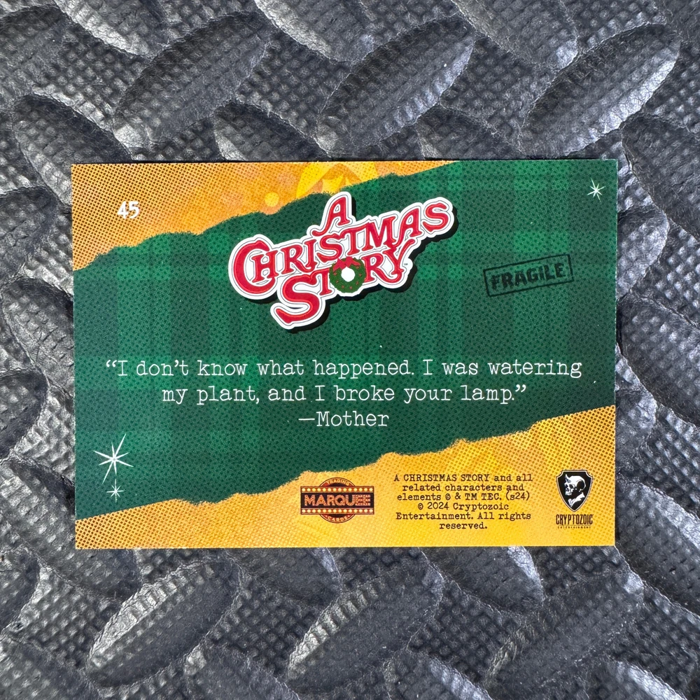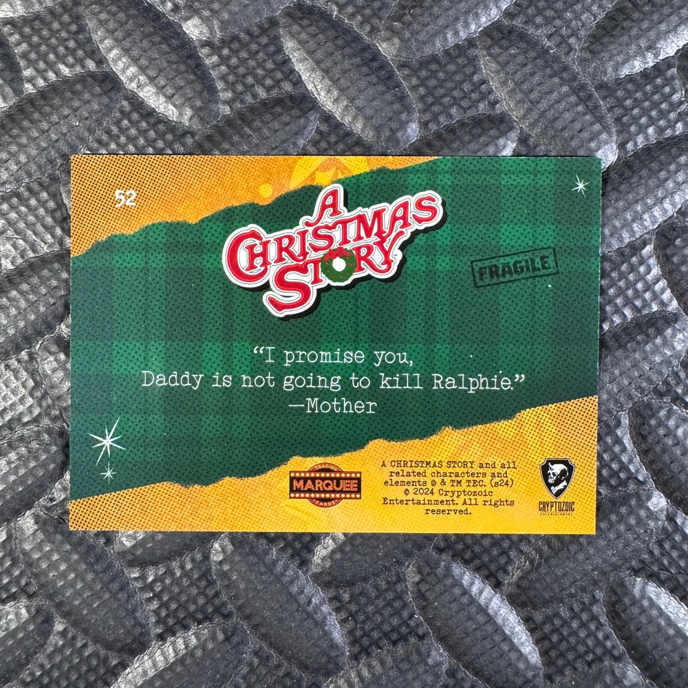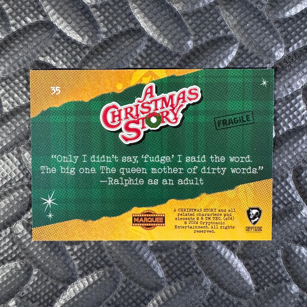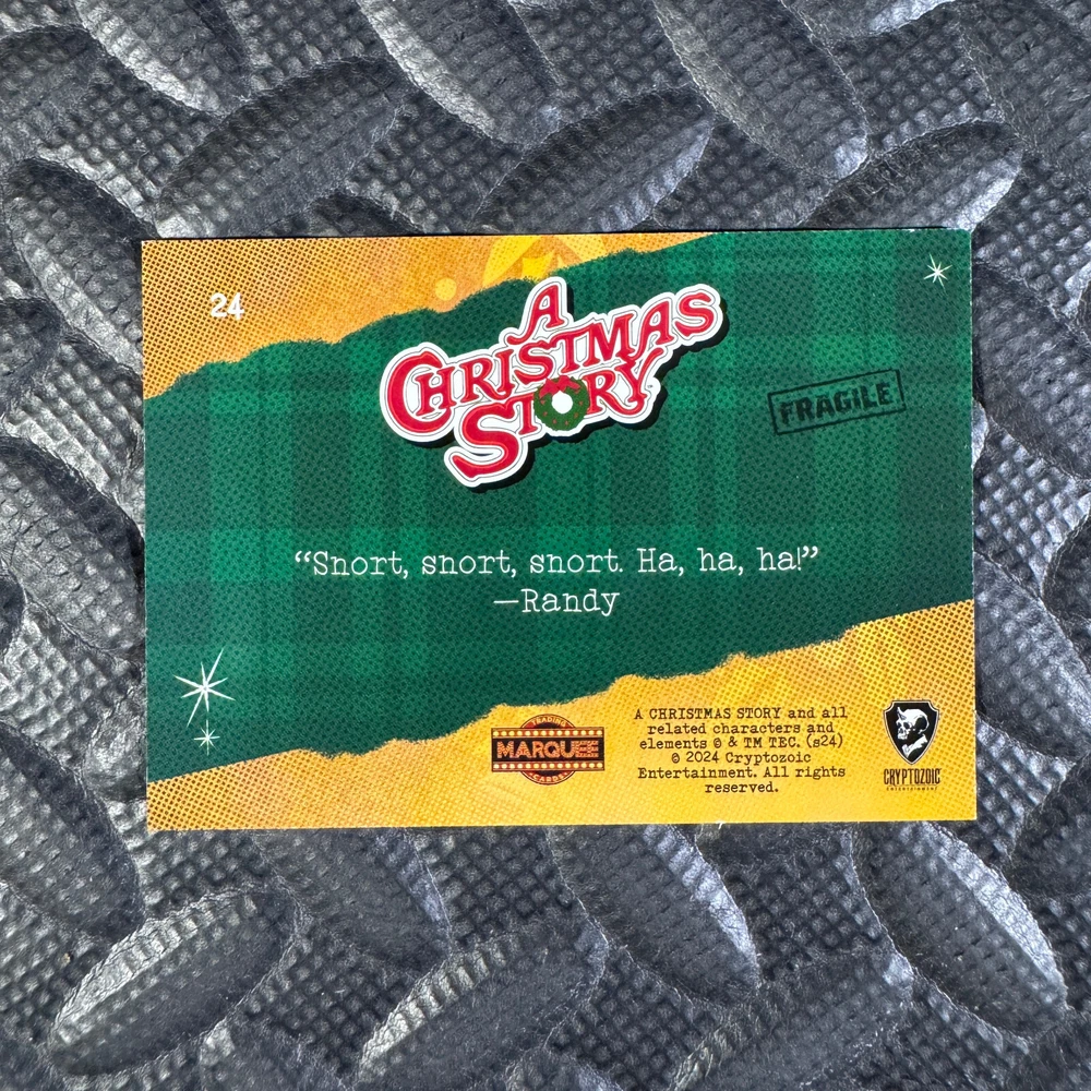 This listing is for your choice of any available 2024 Cryptozoic A Christmas Story base or chase card from the drop-down menu above. Also offering an empty wrapper, and an empty box! (empty box will be shipped flat, in a large envelope) Photos show front and backside of each card, be sure to scroll sideways to view front and backside photos! Check out my other listings for more single parallels from this same set. Any questions? Please ask before buying. International "USPS First Class Mail" will not include a tracking number for this item, if you would like a tracking number please choose the "eBay International Standard Shipping" option when you check out. As with all of my "pick-a-card" listings, I will be shipping with "eBay Standard Envelope". The rules of this envelope state that it cannot be too thick, so please expect your order to be packaged as follows: 1 to 6 cards will be slid into a single sleeve, the sleeve will then be slid inside of a semi-rigid Card-Saver. 7 to 12 cards will be slid into a double sleeve, 13 to 18 cards into a triple sleeve, 19 to 24 cards into a quadruple sleeve(up to six cards per sleeve). The double, triple and quadruple sleeve shipping will not have the Card-Saver. If you buy more than 1 card and want it packaged with more than 1 Card-Saver(or 1 sleeve per card), I kindly ask that you contact me before purchasing to be sure that this is possible to have it done with the stated shipping charge, or if additional shipping would be required. If you do not contact me, then you can expect to receive your order packaged as I have explained here. Please do not expect rigid top-loaders to be included, I don't normally keep a lot of them in stock, but if you message me prior to ordering I will be able to see if I have any that can be included with your order - additional shipping may be required. In order to get free combined shipping from this and any of my other "pick-a-card" listings, you must add all of your cards to the cart and check out when you are done shopping. If you do not use the cart you will be overpaying on shipping and I cannot refund you on over-payed shipping. So please use the cart and get your FREE COMBINED SHIPPING!