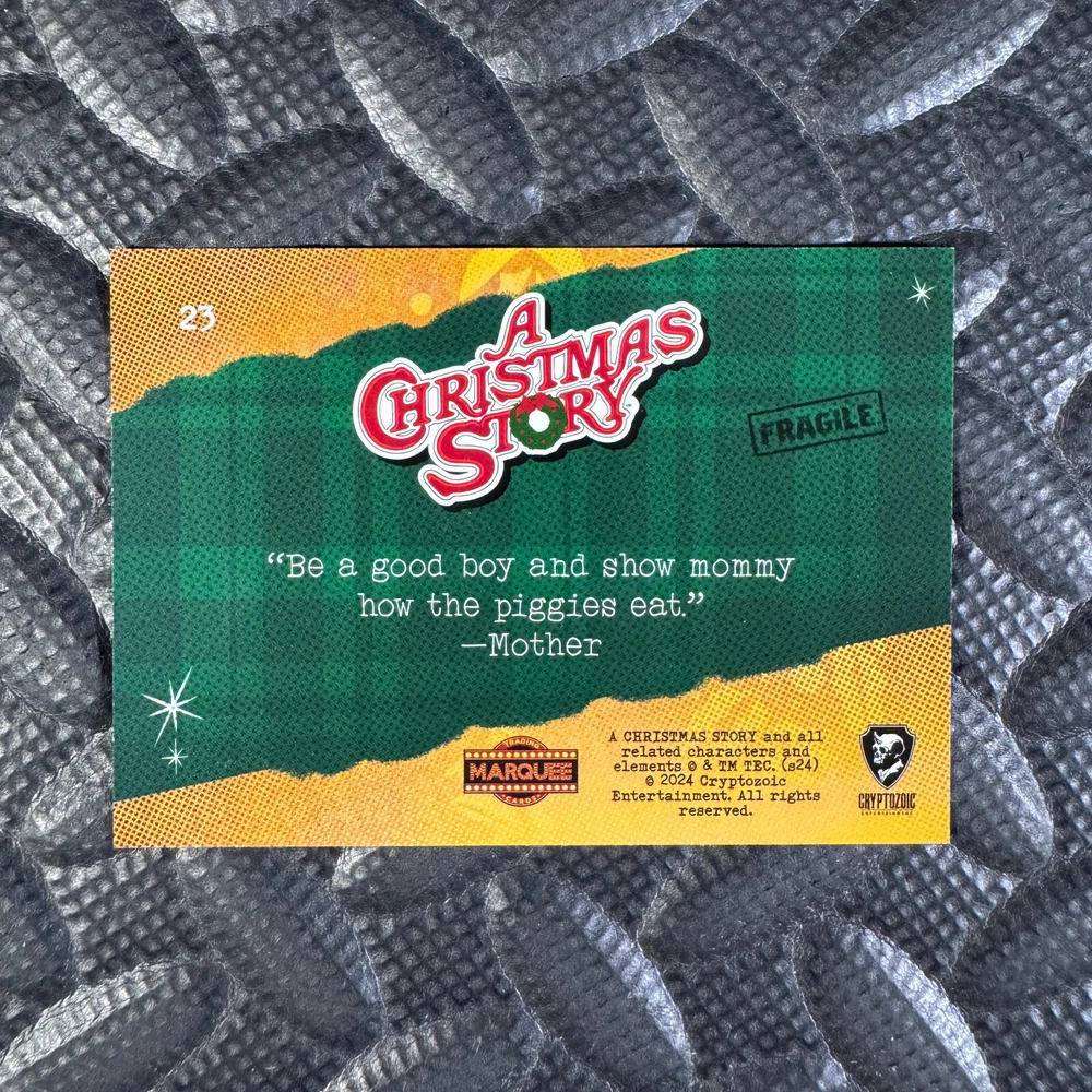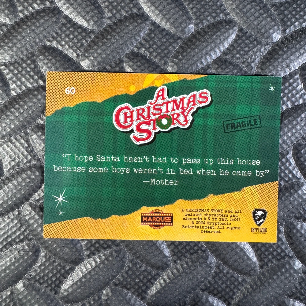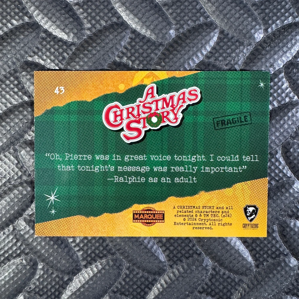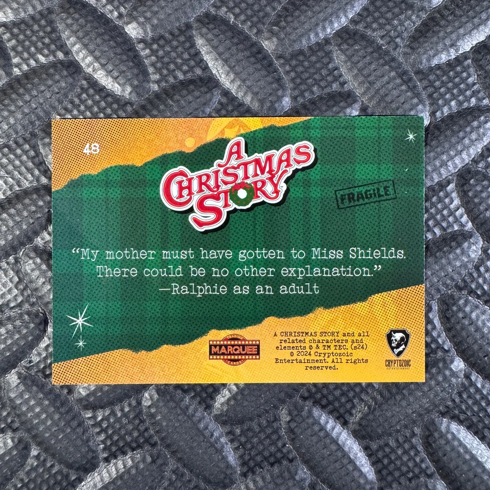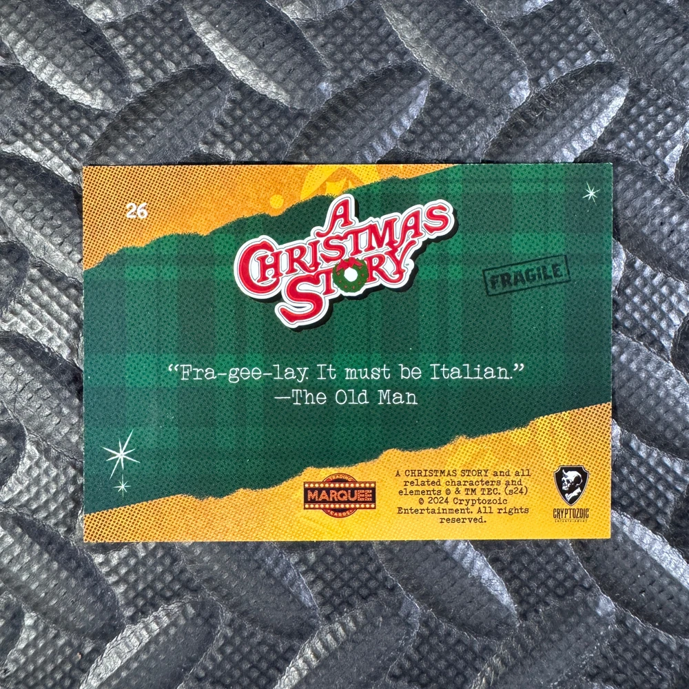 This listing is for your choice of any available 2024 Cryptozoic A Christmas Story base or chase card from the drop-down menu above. Also offering an empty wrapper, and an empty box! (empty box will be shipped flat, in a large envelope) Photos show front and backside of each card, be sure to scroll sideways to view front and backside photos! Check out my other listings for more single parallels from this same set. Any questions? Please ask before buying. International "USPS First Class Mail" will not include a tracking number for this item, if you would like a tracking number please choose the "eBay International Standard Shipping" option when you check out. As with all of my "pick-a-card" listings, I will be shipping with "eBay Standard Envelope". The rules of this envelope state that it cannot be too thick, so please expect your order to be packaged as follows: 1 to 6 cards will be slid into a single sleeve, the sleeve will then be slid inside of a semi-rigid Card-Saver. 7 to 12 cards will be slid into a double sleeve, 13 to 18 cards into a triple sleeve, 19 to 24 cards into a quadruple sleeve(up to six cards per sleeve). The double, triple and quadruple sleeve shipping will not have the Card-Saver. If you buy more than 1 card and want it packaged with more than 1 Card-Saver(or 1 sleeve per card), I kindly ask that you contact me before purchasing to be sure that this is possible to have it done with the stated shipping charge, or if additional shipping would be required. If you do not contact me, then you can expect to receive your order packaged as I have explained here. Please do not expect rigid top-loaders to be included, I don't normally keep a lot of them in stock, but if you message me prior to ordering I will be able to see if I have any that can be included with your order - additional shipping may be required. In order to get free combined shipping from this and any of my other "pick-a-card" listings, you must add all of your cards to the cart and check out when you are done shopping. If you do not use the cart you will be overpaying on shipping and I cannot refund you on over-payed shipping. So please use the cart and get your FREE COMBINED SHIPPING!