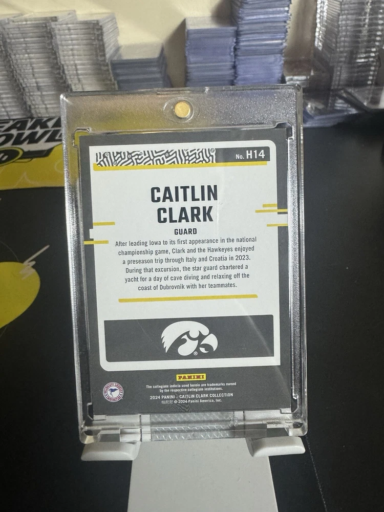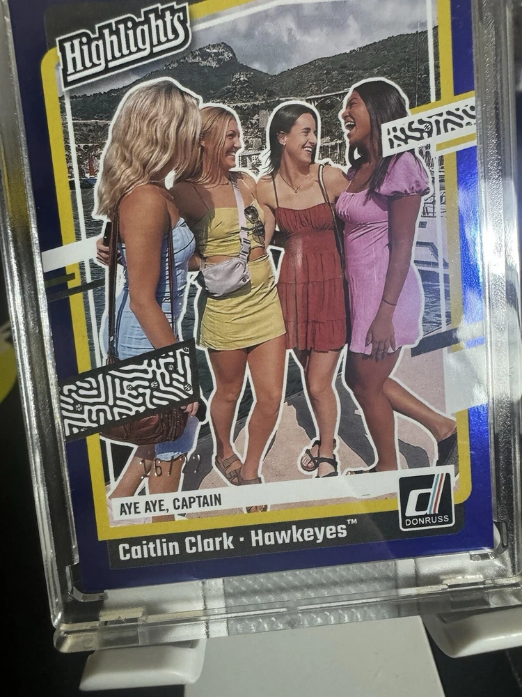 This rare 2024 Caitlin Clark Collection trading card is a must-have for any basketball fan. The card features a blue parallel variety and is one of only 22 in existence. It showcases the talented Indiana Fever and Iowa Hawkeyes player in her Aye Aye Captain design, making it a unique addition to any collection. The card is manufactured by Topps and is an exclusive, insert feature. It is autographed and numbered H14, making it a highly sought-after item. Perfect for collectors and enthusiasts alike, this trading card is a valuable piece of sports memorabilia.