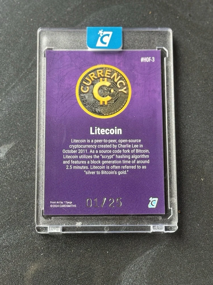 Character: Litecoin, Currency Franchise: Currency, Cardsmiths, Cardsmiths Currency Type: Non-Sport Trading Card Country/Region of Manufacture: United States Set: Series 3 Autographed: No Parallel/Variety: Purple Card Name: Litecoin Manufacturer: Cardsmiths Vintage: No Card Condition: Near Mint or Better Language: English Graded: No Original/Licensed Reprint: Original Year Manufactured: 2024 Featured Person/Artist: Litecoin Card Size: Standard Material: Card Stock Card Number: HOF-3 Features: Serial Numbered, Parallel/Variety