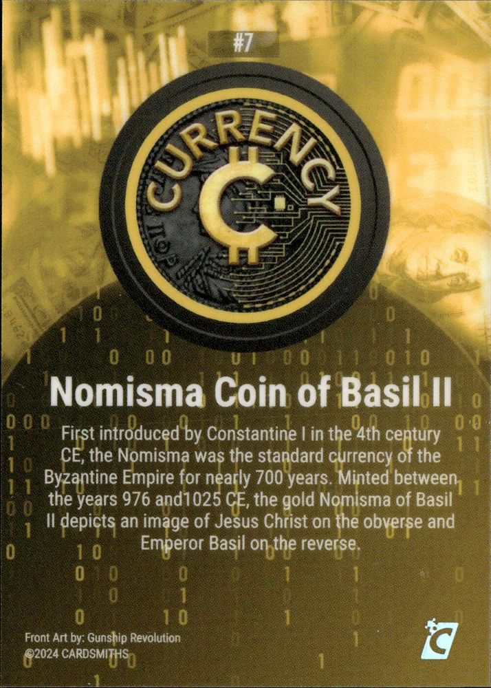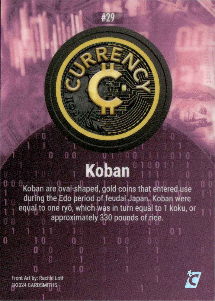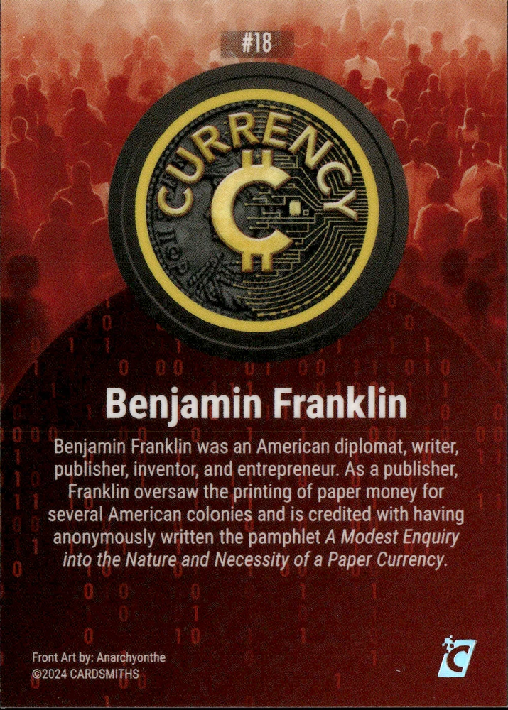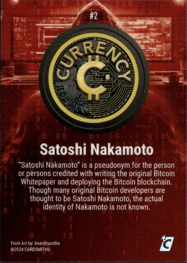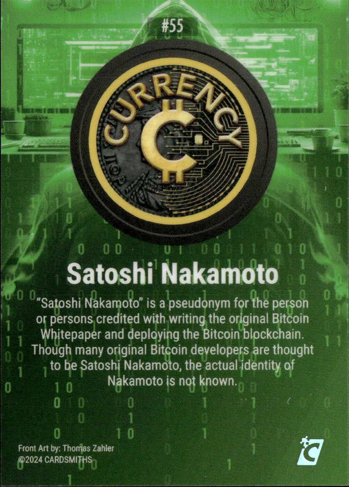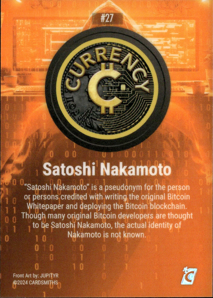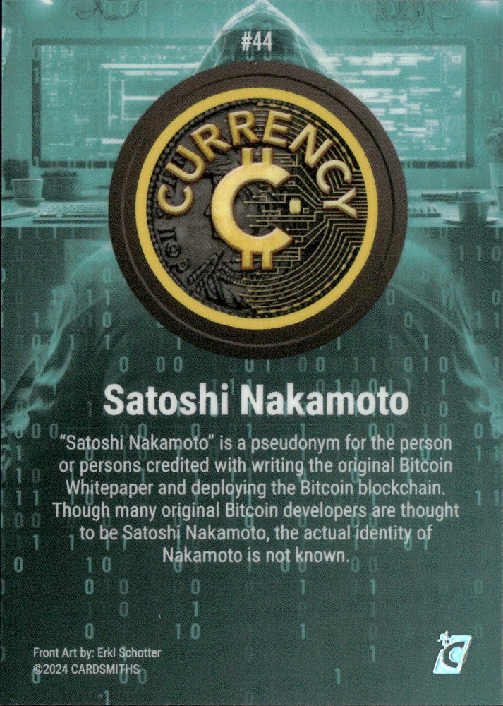 Complete your set of 2024 Cardsmiths Currency Series 3 with these base cards. Each card features a unique design inspired by the world of crypto and Bitcoin. Manufactured by Cardsmiths in the United States, these trading cards are perfect for collectors and fans of non-sport collectibles. The set includes various cards to choose from, allowing you to customize your collection according to your preferences. Don't miss this opportunity to add some rare pieces to your collection and own a piece of crypto history.