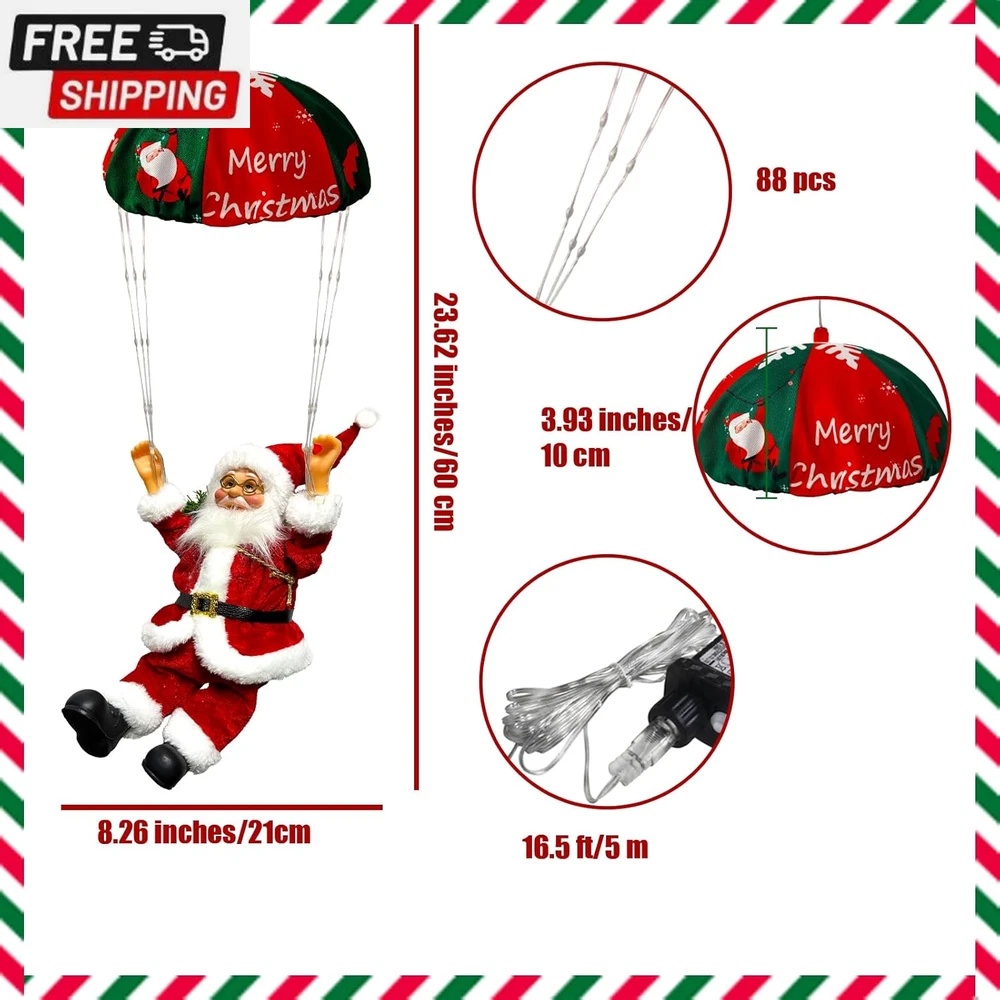 Fast Shipping On All Items 30 Days Money Guarantee Customer Support Excellent Service 100% Satisfaction Satisfaction Guaranteed 2024 Christmas Decorations, 23.6" Hanging Parachute Santa Claus Lights, 8 Lighting Modes Lighted Santa with String Light for Xmas Tree 16.5Ft Wire Plug, Novelty Ornaments for Home, Stairway Specification Color Red 8.26 inches x 8.26 inches x 23.6 inches. Weight: 1.04 lb Item Description π² Festive Decor π²: Liven up your holiday decorations with this charming novelty parachute Santa Claus to hang from Christmas trees, stairway, wall or ceilings. π² Parachute Design π²: The Santa figure features a unique parachute design and LED string light, adding a whimsical touch to your Christmas decoration. π LED String Lighting Warm White π : This product includes a very bright LED string light, 8 lighting modes for option. Very perfect for Christmas tree, wall, stair decoration. π 8 Lighting Modes and Timer Setting π : The Parachute Santa Claus LED string light with 8 working modes, like: flash, stay on, fade, twinkle, breathing, sequential. Also with a timer function, 18hrs off and 6hrs on with memory function. π Creative Holiday Display π : Explore creative ways to incorporate these decorations into your holiday setup for a truly unique and eye-catching display. π Versatile Pieces π : These decorative items can be used in various settings, from indoor trees to outdoor displays, bringing festive cheer wherever they're placed. π Gift Idea π : Hang the 23.6" Hanging Parachute Santa Claus Lights on the Christmas tree as a unique and eye-catching gift. Product Description The video showcases the product in use. The video guides you through product setup. The video compares multiple products. The video shows the product being unpacked. Hanging Parachute Santa Light Features Hanging Christmas Santa Light Timer Setting Parachute Santa Claus LED Light with 8 Lighting Modes (1). Combination Mode (2).Waves Mode (3). Sequential Mode (4). Breathing Mode (5). Chasing Mode (6).Slow Fade Mode (7). Twinkle Mode (8). Steady On Mode Parachute Santa Claus Light for Different Applications 1 Novel Decorations 2 Warm Lighting 3 Gift Idea 4 Outside Decoration 5 Home Decor Ideas Hanging Installation Tips About us We offer the best prices around on high quality products. Our E-store includes media such as books, movies, music and games while offering electronics, toys, sporting apparel, clothing, tools, general home, garden items and more. Shipping We are always working hard to ensure your package arrives as soon as possible. Please understand that some factors like weather, high postal traffic, and the performance of shipping companies are outside of our control. We offer free shipping to the lower 48 states and ship within 2-3 business days of payment, usually sooner. We do not accept P.O. Boxes. Please provide a physical address. For shipping outside of the continental USA, we only use eBay's Global Shipping Program.The item is shipped to KY and then sent to the rest of the world. International customers are responsible for all duties and taxes. Continue to check out to calculate costs for shipping the item to your country. Messages regarding eBay's Global Shipping Program MUST be directed at eBay EXCLUSIVELY. Returns We offer a 30-Day Return Policy on items in which you are not completely satisfied with. You have the option of a full-refund or an exchange of the item. No returns are available on items shipped outside of the USA Satisfaction We try over very best to make sure every customer is completely satisfied. If there's a problem, message us! We're happy to help. Payment Options Shop With Confidence