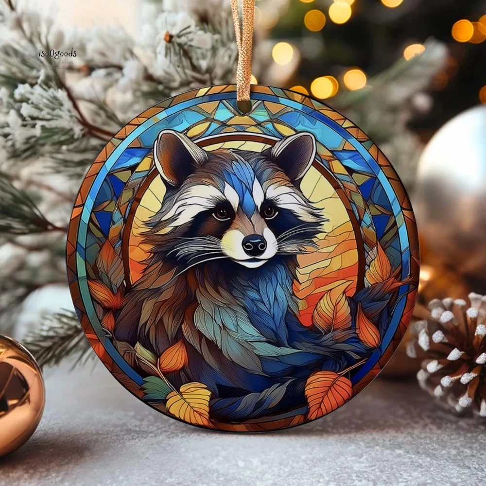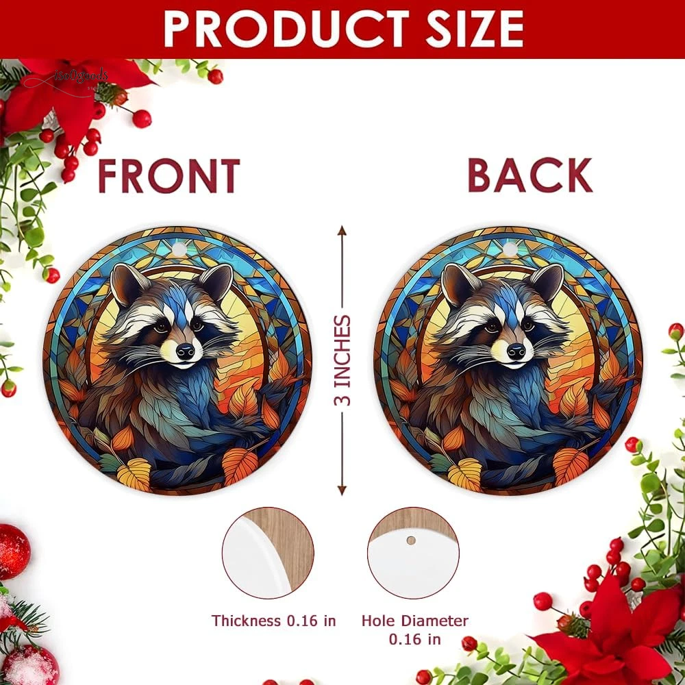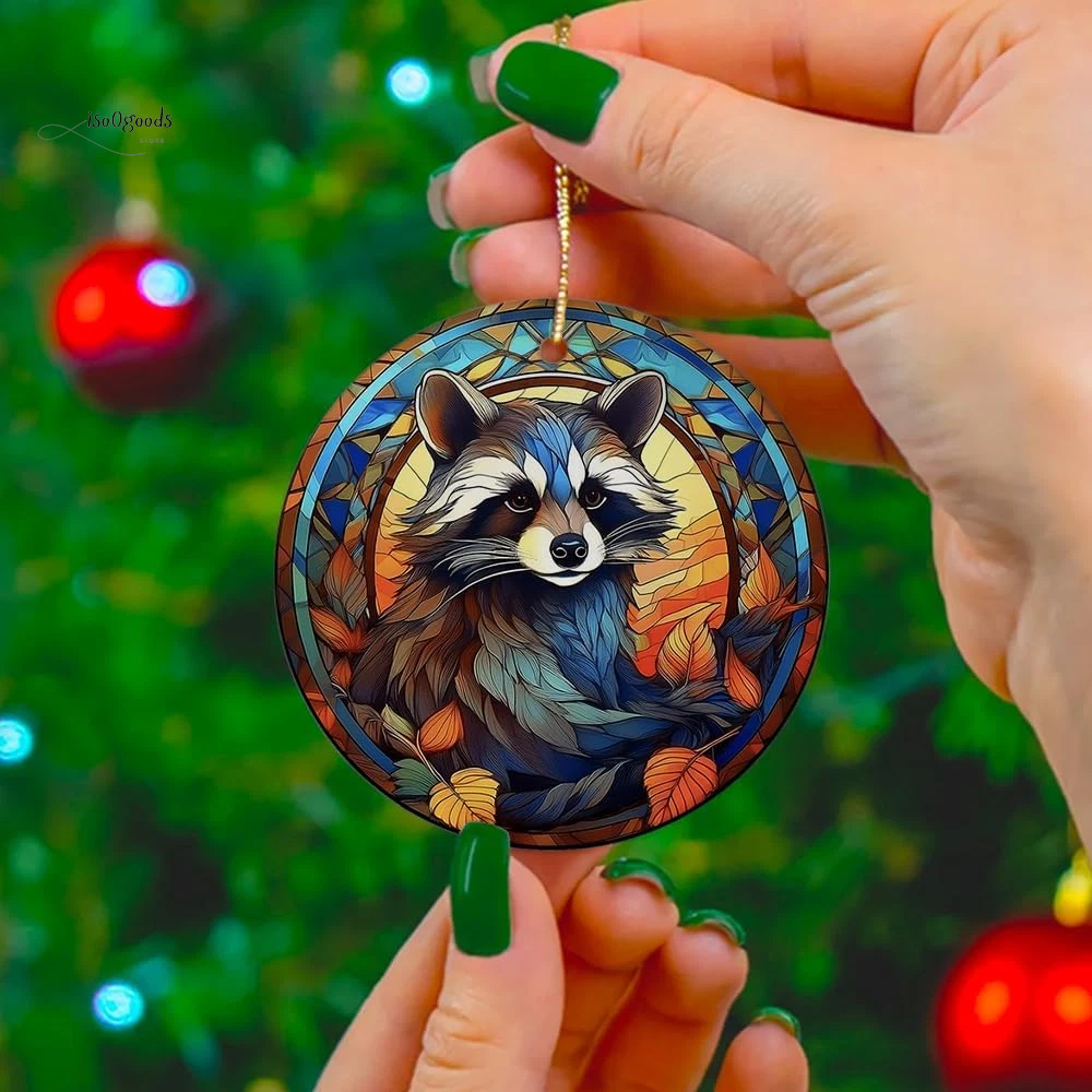 [Raccoon Stained Glass Window Ceramic Ornament - Elegant Christmas Decor] Unique Design: Bring a touch of wildlife elegance to your Christmas decor with this charming raccoon ornament. Beautifully captured in a stained glass window style, it adds a whimsical yet sophisticated element to your festive display. Premium Quality: Crafted from high-quality ceramic, this ornament is durable and long-lasting, ensuring it can be cherished for many Christmases to come. Perfect Size: Measuring approximately 3 inches in diameter, it's the ideal size for hanging on your Christmas tree, mantel, or any festive display. It complements your holiday decor without overpowering it. Versatile Decoration: This ornament is perfect for trees, wreaths, or as a standalone decoration on a gift-wrapped present. Its versatile design makes it a standout addition to any holiday setup. Thoughtful Gift: An excellent gift choice for raccoon lovers, family, and friends. Spread joy and warmth during the holiday season with this delightful ornament. Gift-Ready Packaging: Comes with a ribbon for easy hanging and arrives in a protective gift box. Ready to gift or store, it’s the perfect holiday keepsake. Easy Maintenance: Simple to clean and store, ensuring that this ornament will continue to brighten your holidays year after year. Product Description: Celebrate the holiday season with the Raccoon Stained Glass Window Ceramic Ornament . Perfect for adding a touch of charm and elegance to your festive decor, this ornament features a beautifully detailed raccoon design in a stained glass window style. Key Features: Unique Design: Captivating raccoon in stained glass window style. Premium Quality: Durable ceramic construction for long-lasting use. Perfect Size: 3-inch diameter, ideal for various festive displays. Versatile Decoration: Suitable for trees, wreaths, or as standalone decor. Thoughtful Gift: Perfect for raccoon lovers, family, and friends. Gift-Ready Packaging: Comes with a ribbon and protective gift box. Easy Maintenance: Simple to clean and store. Why You'll Love It: Elegant Design: Adds a touch of sophistication to your Christmas decor. Durable: Made from high-quality materials for lasting enjoyment. Ready to Gift: Thoughtfully packaged for immediate gifting or storage. Specifications: Material: High-quality ceramic Size: Approximately 3 inches in diameter Print Type: UV Printing on both sides Package Includes: Ornament with ribbon for hanging and protective gift box Brighten your holiday season with the Raccoon Stained Glass Window Ceramic Ornament . Order now and add a unique, elegant touch to your Christmas celebrations!