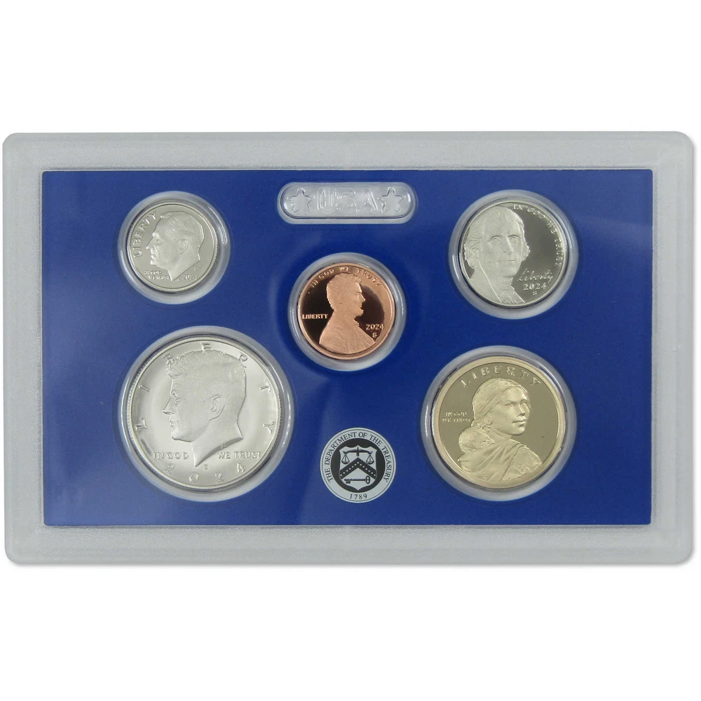 Home About Us Feedback View All Listings Contact Us Menu Home About Us Feedback View All Listings Contact Us 2024 Clad Proof Set U.S. Mint Original Government Packaging OGP COA This official 2024 U.S. Mint 10 coin Proof Set contains a Native American dollar, Kennedy half dollar, Roosevelt dime, Jefferson nickel and Lincoln cent, along with all five American Women quarters, with designs honoring Pauli Murray, Patsy Takemoto Mink, Mary Edwards Walker, Celia Cruz, and Zitkala-Sa. All coins bear the San Francisco "S" mint mark, and feature extra sharp images and mirror-like surfaces. The half dollar, quarters and dime are all copper-nickel clad. Comes with the original U.S. Mint packaging, including a certificate of authenticity. The images used for this listing are stock photos from our inventory. Your purchase is guaranteed to match the quality of the product shown. Profile Coins & Collectibles - More Coins for the Money! Coin Type U.S. Mint Proof Set Denomination 1C, 5C, 10C, 25C, 50C, $1 Date 2024 Mint Mark S Grade Proof Shop by category Coins: US Half Dollars Quarters Small Cents Dollars Dimes Nickels Three Cents Large Cents Two Cents Paper Money: US Store Newsletter Add our store to your Favorites to receive our email newsletters about new items & special promotions. Sign Up Home About Us Feedback View All Listings Contact Us Copyright © 2019 Profile Coins & Collectibles. All rights reserved. eBay template Design by OCDesignsOnline