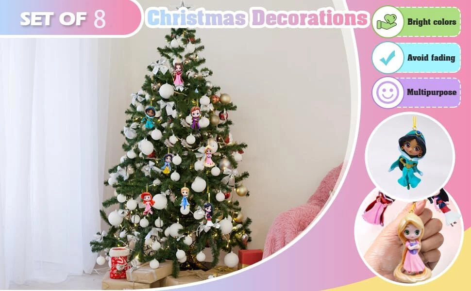 2024 Cute Princess Christmas Tree Decoration Ornament,Pcs Princess 8 Color