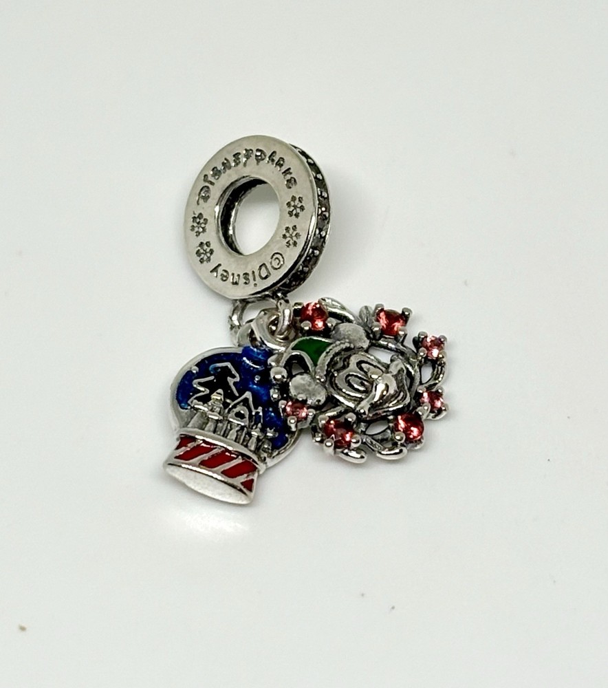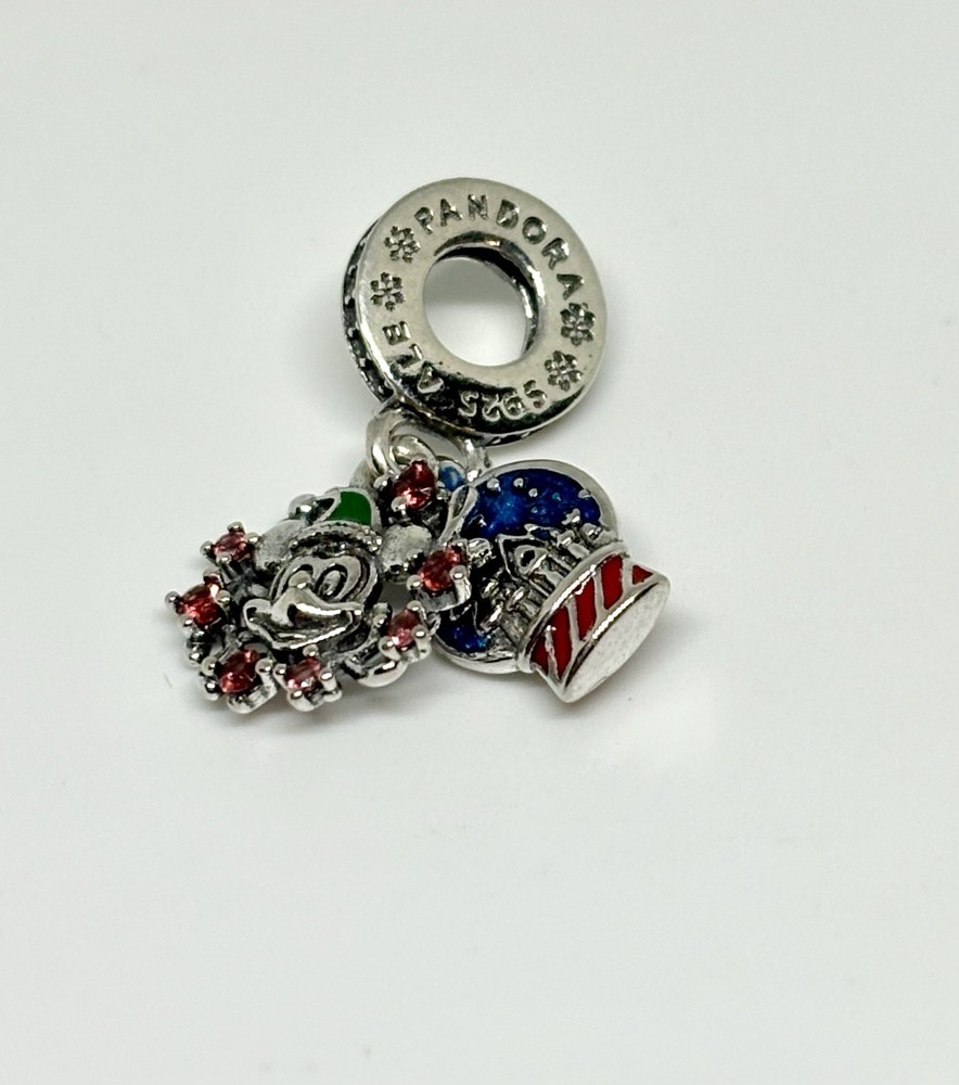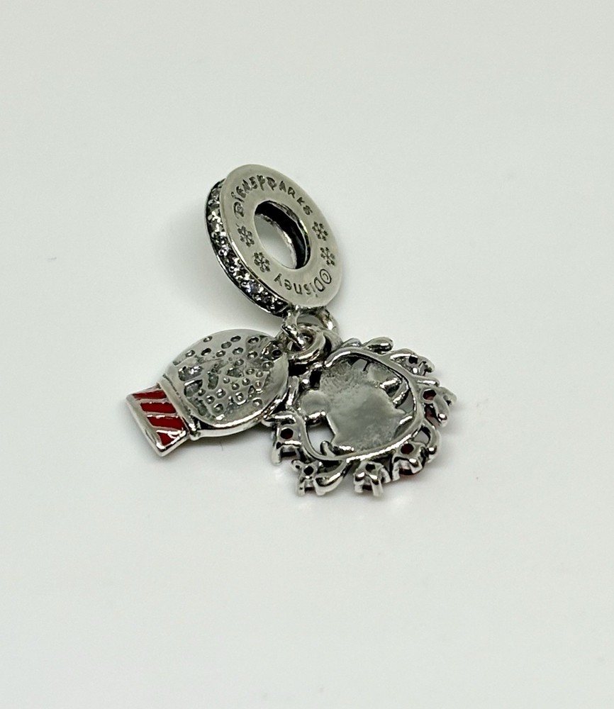 The 2024 Disney Parks Exclusive Pandora Christmas Mickey Dangle Charm is a collectible jewelry piece featuring the iconic Mickey Mouse character from Disney. This charm is a part of the Pandora brand's Disney collection, made in Thailand. Perfect for fans of Disney and collectors of contemporary Disneyana, this charm is a unique and special piece that showcases the beloved Mickey Mouse in a festive and magical way. New with dust bag. ALE stamped.