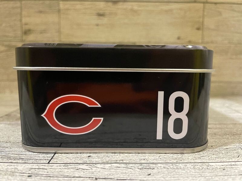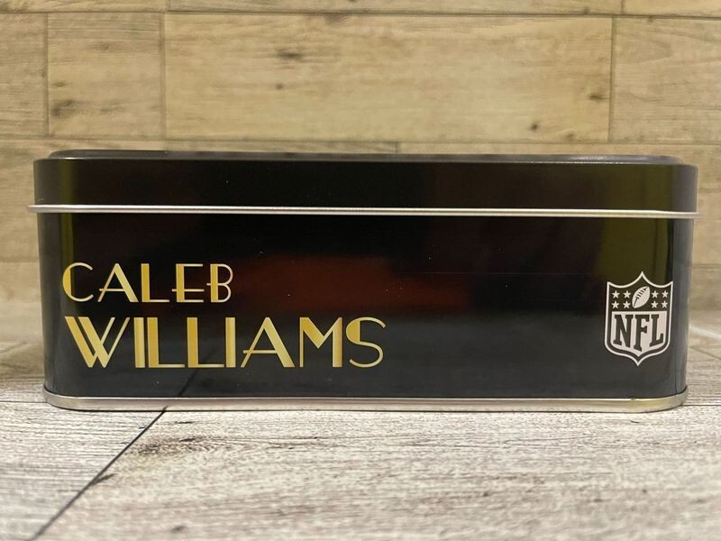 This empty collectors tin is perfect for storing your favorite Caleb Williams or Bears cards! The sleek design and durable build make it a must-have for any fan looking to keep their collection safe and organized. A great addition to any football memorabilia stash!