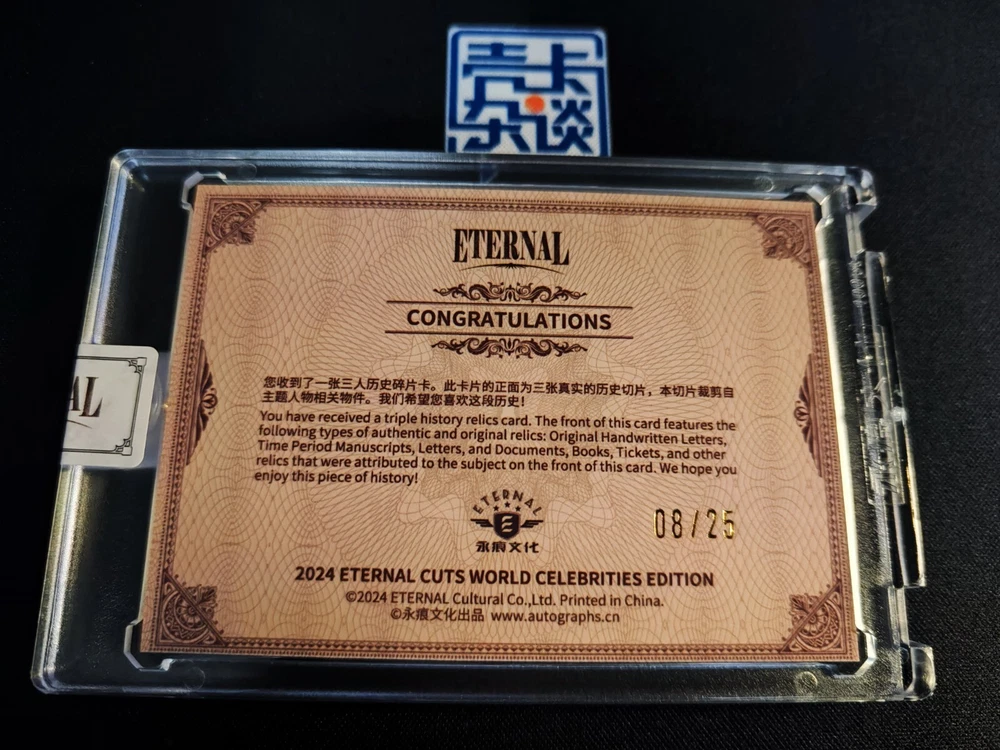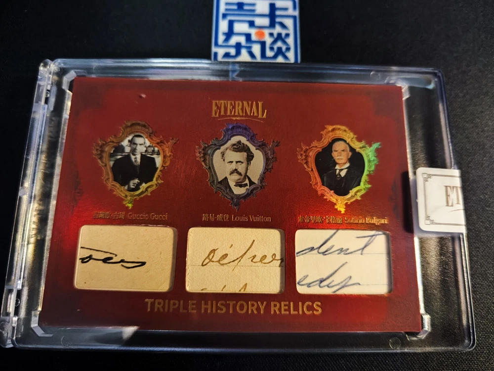 Card Name: Authentic History Relic Autograph Format: Cut Country/Region of Manufacture: China Character: Guccio Gucci, Louis Vuitton, Sotirio Bulgari Year Manufactured: 2024 Manufacturer: Eternal Franchise: World Celebrities Autographed: No Type: Non-Sport Trading Card Features: World Celebrities