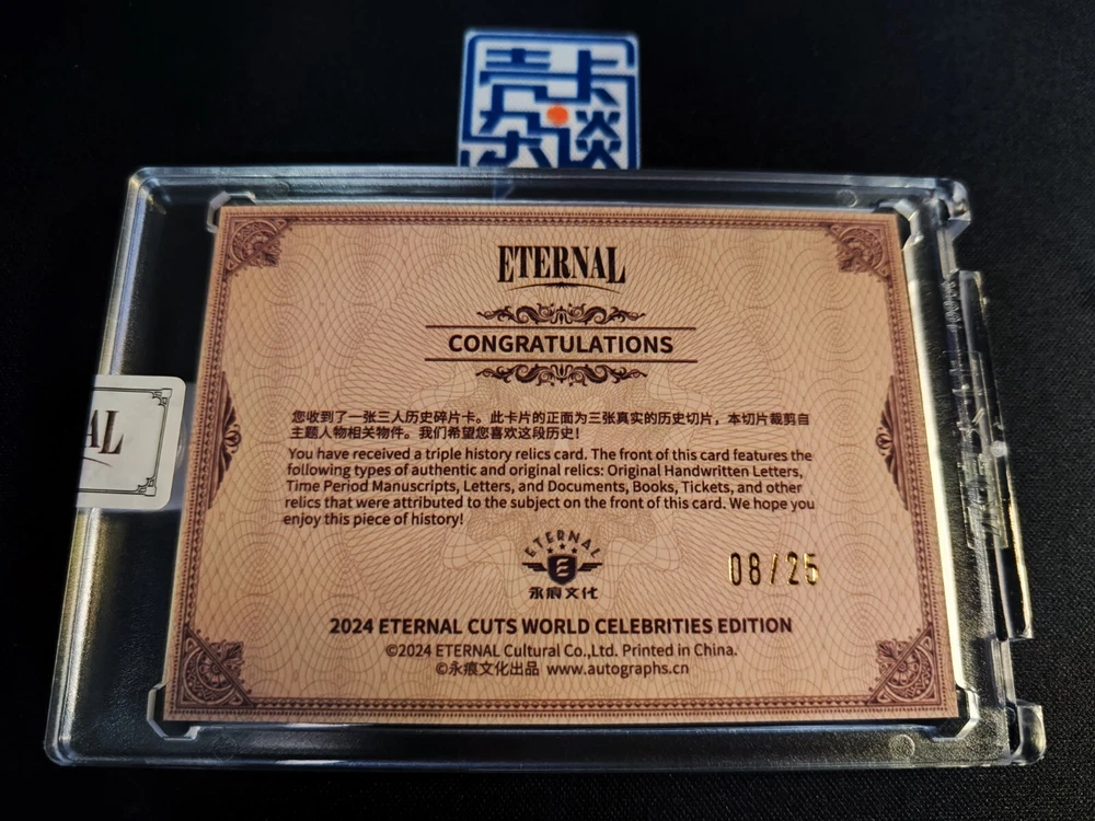 Manufacturer: Eternal Year Manufactured: 2024 Country/Region of Manufacture: China Autograph Format: Cut Character: Helen Keller, Agatha Christie, Mary Shelley Autographed: No Type: Non-Sport Trading Card Card Name: Authentic History Relic Franchise: World Celebrities Features: World Celebrities