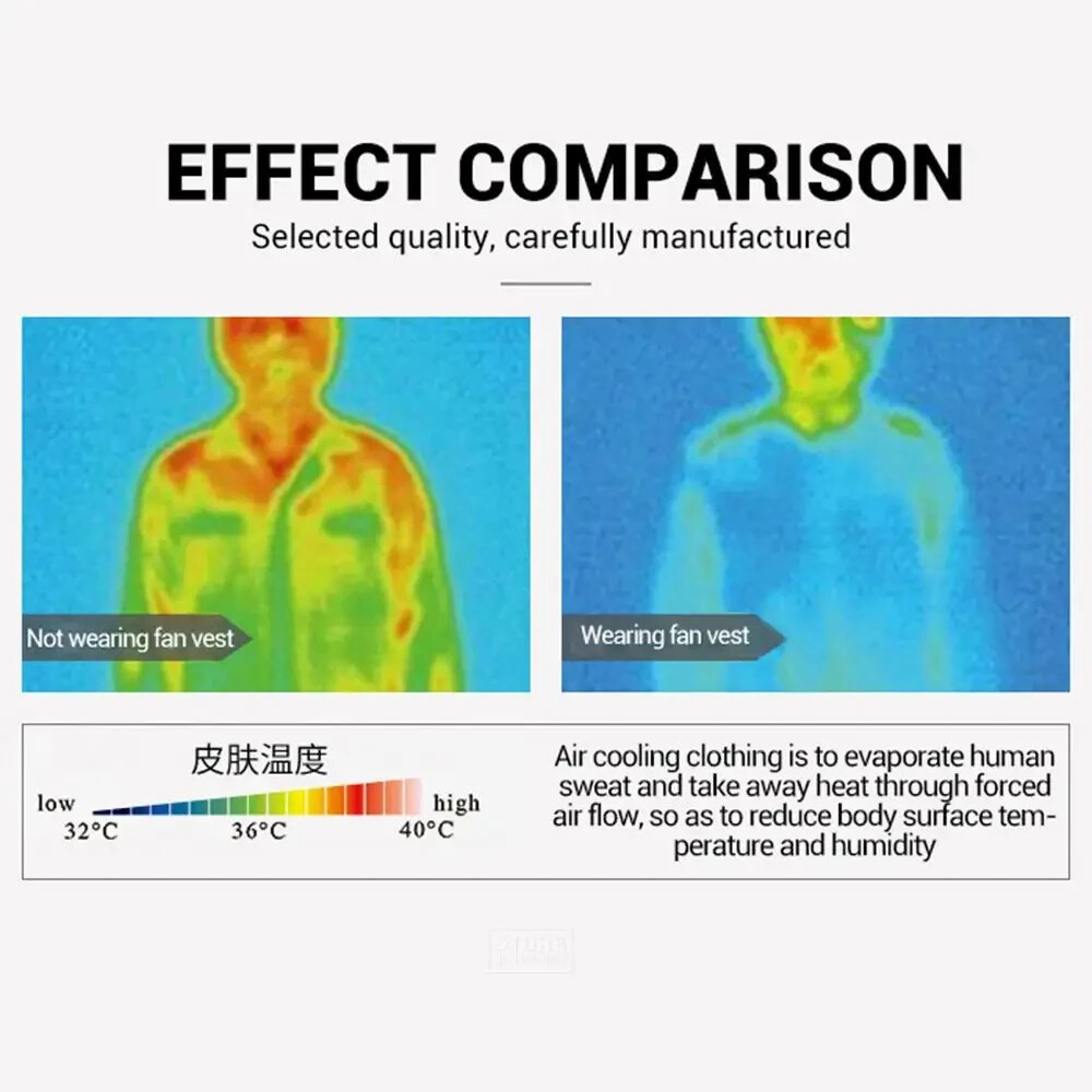 Specification: Name: Cooling fan vest Material: 100% polyester Gender: Men, Women Color: Blue, White Size:S,M, L, XL, XXL, 3XL,4XL,5XL,6XL Power source: Power Bank (NOT INCLUDED) Seasons: Spring and summer How does it work? The air is evenly distributed through the mesh to the whole body. The cool wind will lead the air to circulate within the vest, which will reduce the temperature by 20%. The inner mesh is sweat proof and breathable, and the fan will not come into direct contact with . It is more comfortable and safer to wear such a vest in summer. High-quality materials: The cooling vest is made of lightweight and breathable material, which can not only absorb sweat quickly, but also effectively block ultraviolet rays and prevent heat stroke. And the volume is not large, you do not have to worry about it will affect your work. It will increase your work efficiency. Dual fan design: The cooling fan vest has two fan units at the waist of the garment. Connect the power bank with USB and the clothes will start working. (Power bank not included) It has three airflow modes, so you can adjust the airflow according to the working conditions and reduce the temperature by more than 8°C For your intimate design: the waist is a place where the human body is easy to get cold. Therefore, there is a mesh layer on the waist of the inner layer of the garment. Not only can it prevent the wind from blowing directly to the waist and cause waist damage, it can also guide the wind to spread, quickly evaporate sweat, and take away the heat for you. Safe and easy to use: The cooling fan vest is easy to operate and safe. Machine washable, please don't forget to remove the fan assembly before cleaning. Suitable for many occasions: You can wear this cool clothes to work. Suitable for high temperature operations, such as construction sites, fields and high temperature areas; it is also ideal for sports such as hiking and mountain adventure. It can effectively block ultraviolet rays and can also be used as a windproof vest.