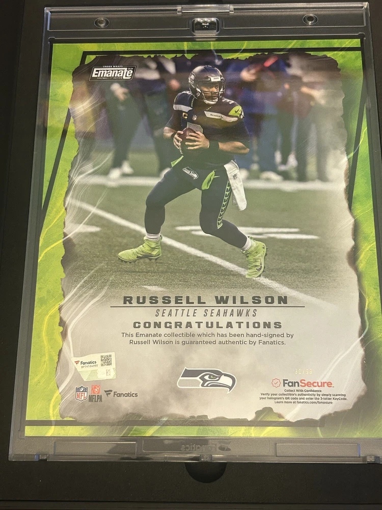 2024 Fanatics Emanate Football Russell Wilson Green Auto /99 Seattle Seahawks 2024 Fanatics Emanate Football Russell Wilson Green Auto /99 Seattle Seahawks