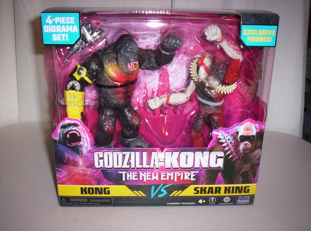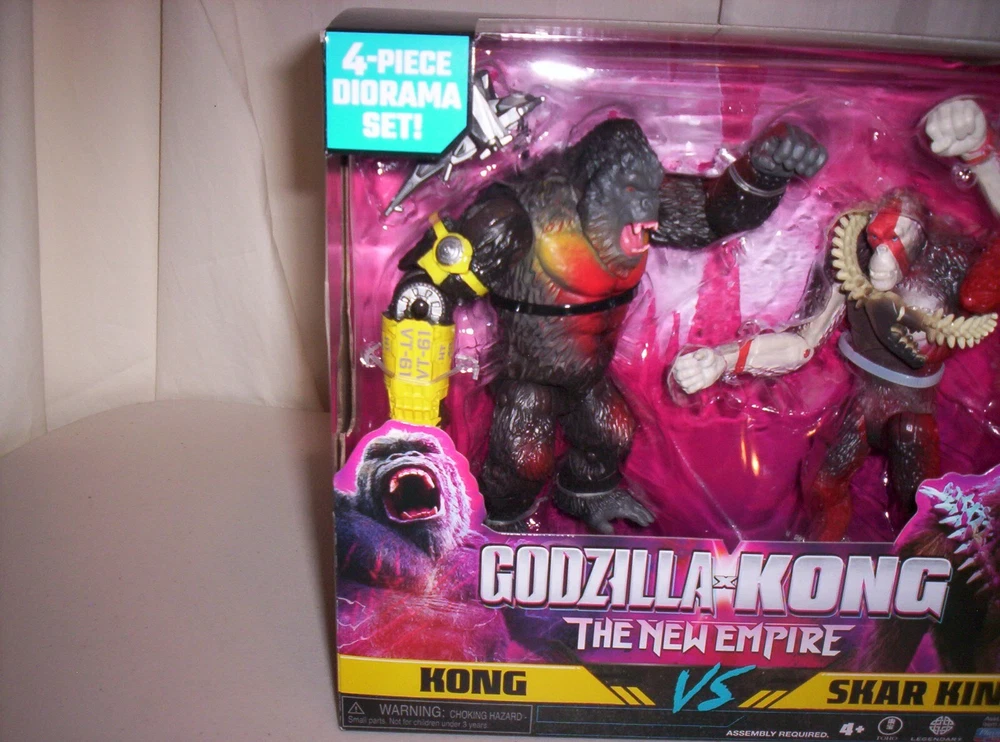 Get ready for an epic battle between the legendary Godzilla and the mighty Kong with this 4-piece diorama set from Playmates. Released in 2024, this set is perfect for fans of the Godzilla and Kong franchises, and is recommended for children aged 4 and up. The set features intricate details and high-quality construction, making it a great addition to any collection. With this set, you can recreate exciting scenes from the upcoming Godzilla x Kong movie, and is perfect for display in your home or office. Made in China, this set is sure to impress and is a must-have for any Godzilla or Kong fan. Order now and add this amazing piece to your collection! Set includes: 2-piece Lava Falls Diorama, 2 Hollow Earth Crystal Dioramas, 6" Kong with B.E.A.S.T. Glove, 6" Skar King, Whiplash, and H.E.A.V. Assembly required.