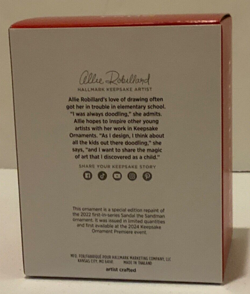SANDAL THE SANDMAN LIMITED EDITION 2024 Hallmark Keepsake “SANDAL the SANDMAN SNOWMAN” Special Limited Edition Keepsake Ornament. New in Box, from a smoke free home and shipped in a solid box with bubble wrap and/or popcorn for protection. See my store for other Hallmark specials, I have 100's of Ornaments from the 1980's thru 2024, as well as 5000 + other collectibles, email with questions...