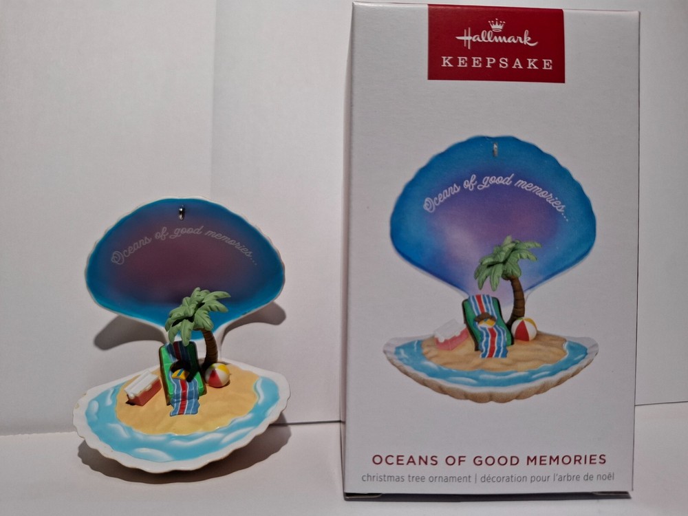 Commemorate a beach vacation with this tropical Christmas tree ornament. Cute seashell design features a sandy beach with a palm tree, beach ball, cooler and lounge chair complete with striped towel, book and wide-brimmed hat. Key Features: Made with 30% post-consumer content, making it easier than ever to sustainably capture your memories and relive them year after year. Message: Oceans of good memories... Additional Details: Artist-crafted by Charlie Hadley. Plastic Christmas ornament features hanger attachment. Includes: One 2024 Keepsake Ornament in gift box for easy gift giving, preservation and storage. Approx. Size in Inches: 2.7 x 3.1 x 3