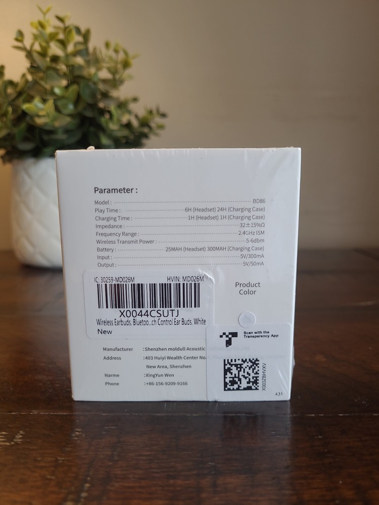 Product Dimensions:2.17 x 1.77 x 0.71 inchesCarrying Case Battery Charging Time:1 HoursCarrying Case Weight:36.9 GramsWireless Technology:BluetoothCountry/Region of Manufacture:ChinaFeatures:StereoCarrying Case Width:4.6 CentimetersBluetooth Range:15 MetersModel Name:BD86Material:PlasticNumber of Earpieces:DoubleConnectivity Technology:Wirelessgtin13:313113063047Bluetooth Version:5.3Audio Driver Type:Dynamic DriverCharging Time:1 HoursColor:WhiteCable Feature:Without CableForm Factor:In EarCarrying Case Length:5.2 CentimetersWater Resistance Level:WaterproofType:Earbud (In Ear)Manufacturer:JesebangStyle:ModernSpecific Uses For Product:Sport, TravelEar Placement:In EarEarpiece Shape:Rounded TipsControl Method:TouchConnectivity:BluetoothItem model number:BD86Wireless Communication Technology:BluetoothCarrying Case Color:WhiteItem Weight:3.2 ouncesNumber of Items:1Age Range (Description):AdultBrand:JesebangBattery Life:6 HoursCarrying Case Battery Average Life:30 HoursSize:30HCountry of Origin:ChinaControl Type:Media ControlCompatible Devices:Cellphones, Telephones, LaptopsBatteries:3 Lithium Polymer batteries required. (included)UPC:313113063047Model:BD86Carrying Case Height:1.98 CentimetersCarrying Case Battery Capacity:300 Milliamp Hours