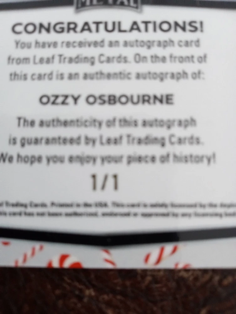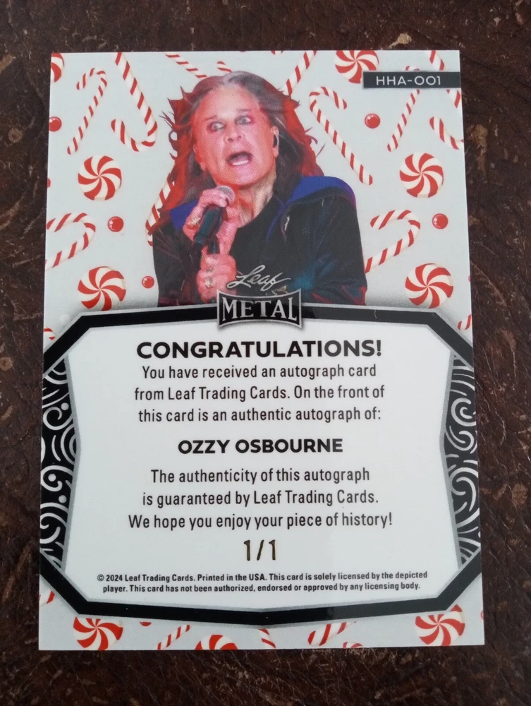 2024 LEAF POP CENTURY METAL OZZY OSBOURNE AUTO 1/1 CANDY CANES SP RARE PULL