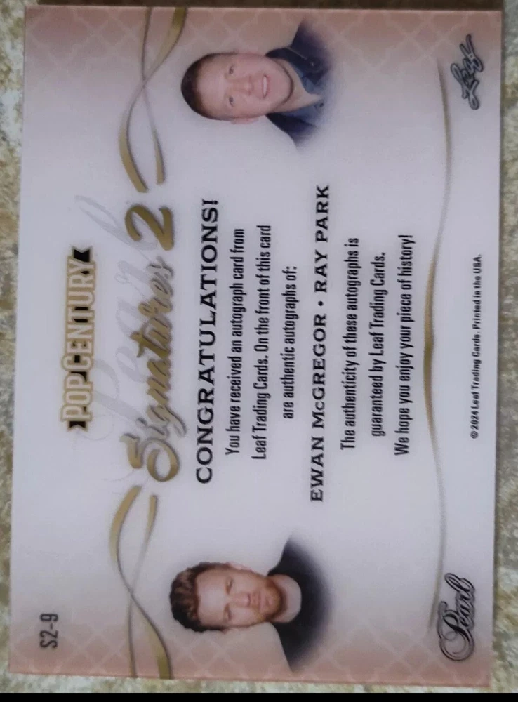 2024 Pop Century Pearl Signatures 2 Ewan McGregor and Ray Park Double Autograph 1/1 True 1 Of 1 Stamped. Ewan McGregor,who played Obi-Wan Kenobi, and Ray Park who played Darth Maul in the 1999 movie Star Wars Phantom Menace. This is the only one that exists so this is your chance to get the perfect Star Wars gift for a true Star Wars fan of all ages. This card is an investment, and will always increase in value . I paid $200.00 look at the picture.