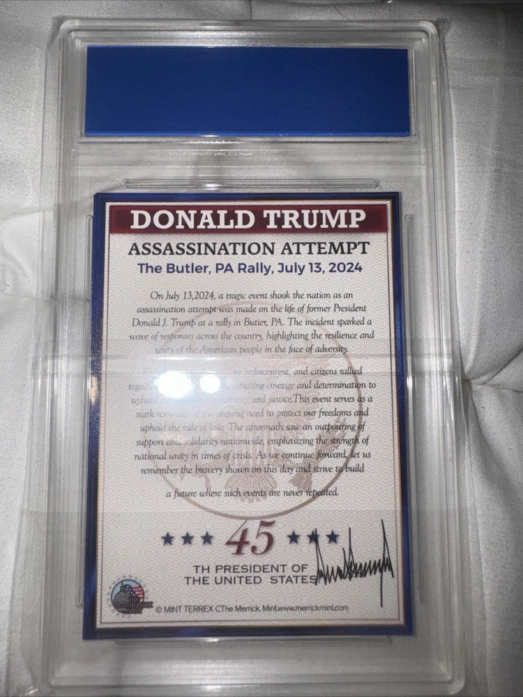 2024 Merrick Mint Donald Trump Assassination Attempt Card WCG GEM-MT 10