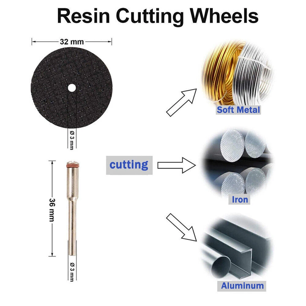 Hello dear customer. thank you for your purchase. If you encounter product problems or operational problems and other problems, you can contact our customer service immediately, and we will solve the problem for you within 24 hours. Please be sure to contact our customer service. I wish you a happy life! ! ! Product Specification Material:HSS / Diamond / Resin Shank Diameter:Approx.1/8" (3mm / 3.3mm) HSS Saw Blades Dia:22/ 25/ 32/ 35/ 44mm Diamond Cutting Disc Dia;25mm Resin Cutting Wheel Dial:32mm Small slit, high precision, high strength, fast work efficiency. Function: Cutting, Grooving and Trimming. Usage: Fit for dremel or other brand most rotary and air tools or Power die grinders. Product Feature HSS Mini Circular Saw Blades: Have 5 sizes (0.88"/ 1"/ 1.26"/ 1.39"/ 1.74") for cutting wood and plastic, case modification, circuit boards and DIY production. High precision and smooth cutting surface. Sharp, durable and long lasting. Diamond Cutting Wheels: Suitable for cutting stone, such as gemstones, glass, ceramics, porcelain, tiles, rocks. Cutting sharp, high density material, invariant and Not burning Wide range of use and long life. Resin Cutting Wheels: Reinforced with fiberglass for increased durability. Perfect for cutting metal including hardened steel, Iron, aluminum. Excellent Gift for DIY Enthusiasts: There are 3 types cutting discs to create a high working efficiency, perfect cutting effect, and convenient to cut, simple to use, safe and reliable. Package Included 30PCS( 5 × Mandrels+5 × HSS Circular Saw Blades+10 × Diamond Cutting Discs+10 × Resin Cut-Off Wheels On Oct 23, 2023 at 18:21:22 PDT, seller added the following information: