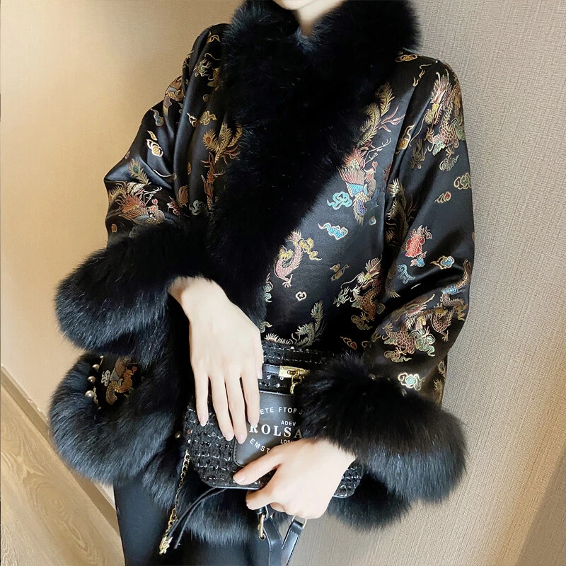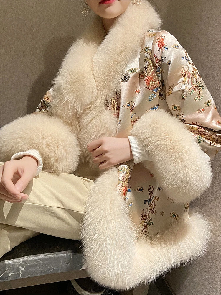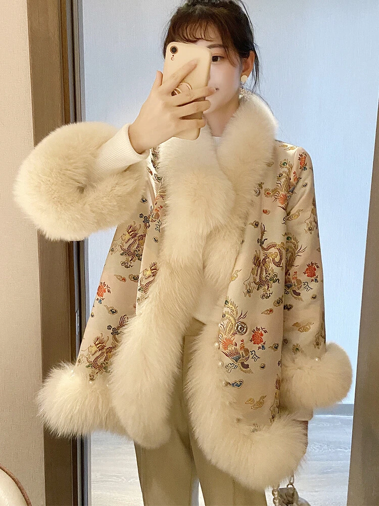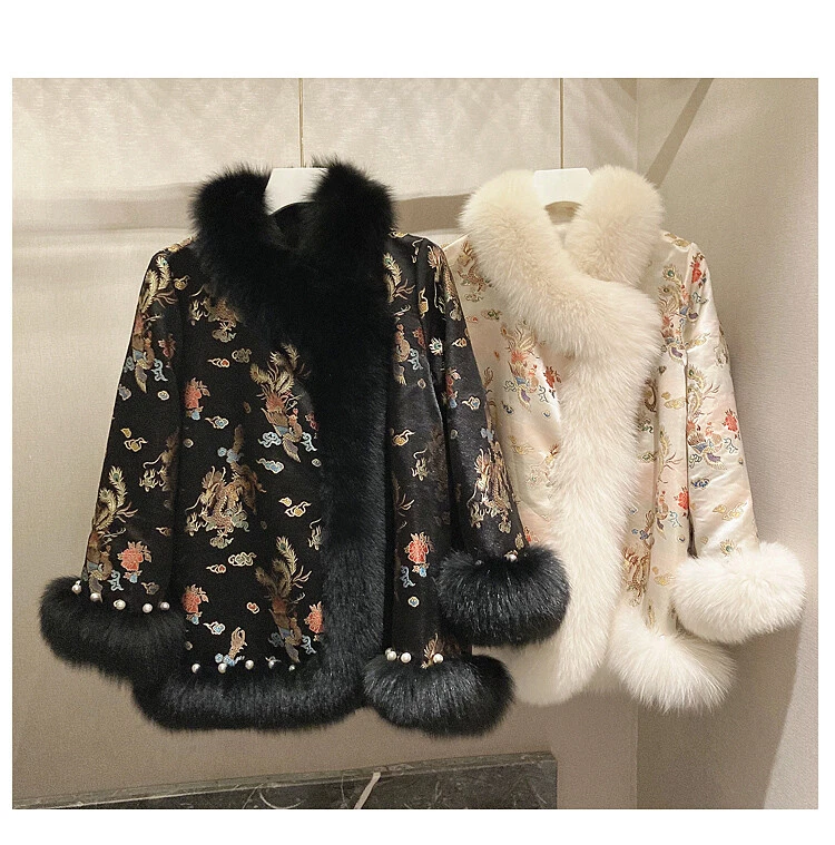 2024 New Korean Winter Fox Fur Cloak Fur Coat Women's Chinese Style Cotton Coats