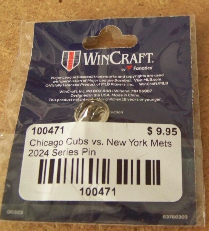 2024 NY New York Mets at Chicago Cubs Wrigley Field lapel pin This MLB licensed, post and butterfly clip backed lapel pin measures about 1" wide, 1.3" tall. Factory sealed, unopened. Don’t forget to click on my "Stores" link, next to my eBay name, to see other items I currently have listed for sale, or you can copy and paste this address into your browser: stores.ebay.com/highcountrycollectibles SHIPPING INFORMATION Shipping to U.S. addresses is FREE! HIGH COUNTRY COLLECTIBLES Since 1989 – A LEADER IN THE DENVER SPORTS MEMORABILIA MARKET. Check out my other auctions and listings, and keep an eye out for the different, unusual, and EXCLUSIVE items available nowhere else but from High Country Collectibles.