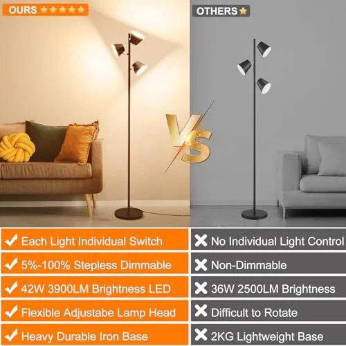 Menu 1. We require immediate payment. 2. We currently accept payment via eBay managed payments only. 3. Once payment is cleared, we will dispatch your shipment within 1-3 business days. Please refer to the "Shipping" tab for more information regarding shipping speed to your destination. [2024 New]42W Tree Floor Lamp, Super Bright LED Standing Lamp with Remote, Modern Dimmable Floor Light 3 Lamps Individual Control, 2700K-6500K Rotable Head LED Lamp for Living Room Bedroom Office Product description 【Modern 3-Lights Individual Control】 This 42w tree floor lamp is equipped with humanized 3-lights design, which caters for multiple lighting use. Each Light has individual control, can be turned on/off and dimmable by touch sensor or remote. You can turn on all the lights for super bright lighting or turn off 1-2 lights for reading or bedtime. 【Flexible Rotation】As the difficulty of rotating floor lamps on the market has caused great inconvenience to people, we strive and eventually improved our three head floor lamps. They can be flexibly 360° rotated and 180° flipped and fixed in place. With this unique design and modern appearance, this standing lamp is well fit for living room, bedroom, office, study, bar, club, restaurant, etc. 【RF Remote-Magnetic to Lamp 】This black floor lamp has touch sensor control and comes with a remote( batteries not included) . The remote control distance is 49ft/15m, you can easily control this dimmable floor lamp without leaving your bed. Besides, the back of remote is magnetic and is firmly attached to the lamp pole, so you can easily find it. The remote control provides a variety of lighting modes to meet different needs such as reading, working, leisure, breastfeeding and sleeping. 【100% Iron Base-Safer for Children】The led floor lamp base design of the floor lamp focuses on stability, with a 100% iron weighted and widened bottom design,which minimize the potential danger of pets and children being tipped over. 【Easy to Assemble & Eye Protection】This modern floor lamp light source is stable without flickering, and creates a soft and smooth atmosp with pure light. The light keeps you from eye fatigue and does no harm to your eye. This tall led lamp is very easy to put together, just connect the 4 lamp pole together from the top of the lamp to the base, you can finish the assembly in 3 minutes. PLEASE MESSAGE US IF YOU HAVE ANY OTHER QUESTIONS, AND MANY THANKS FOR READING ALL OF THIS. Copyright ©#. All Rights Reserved.