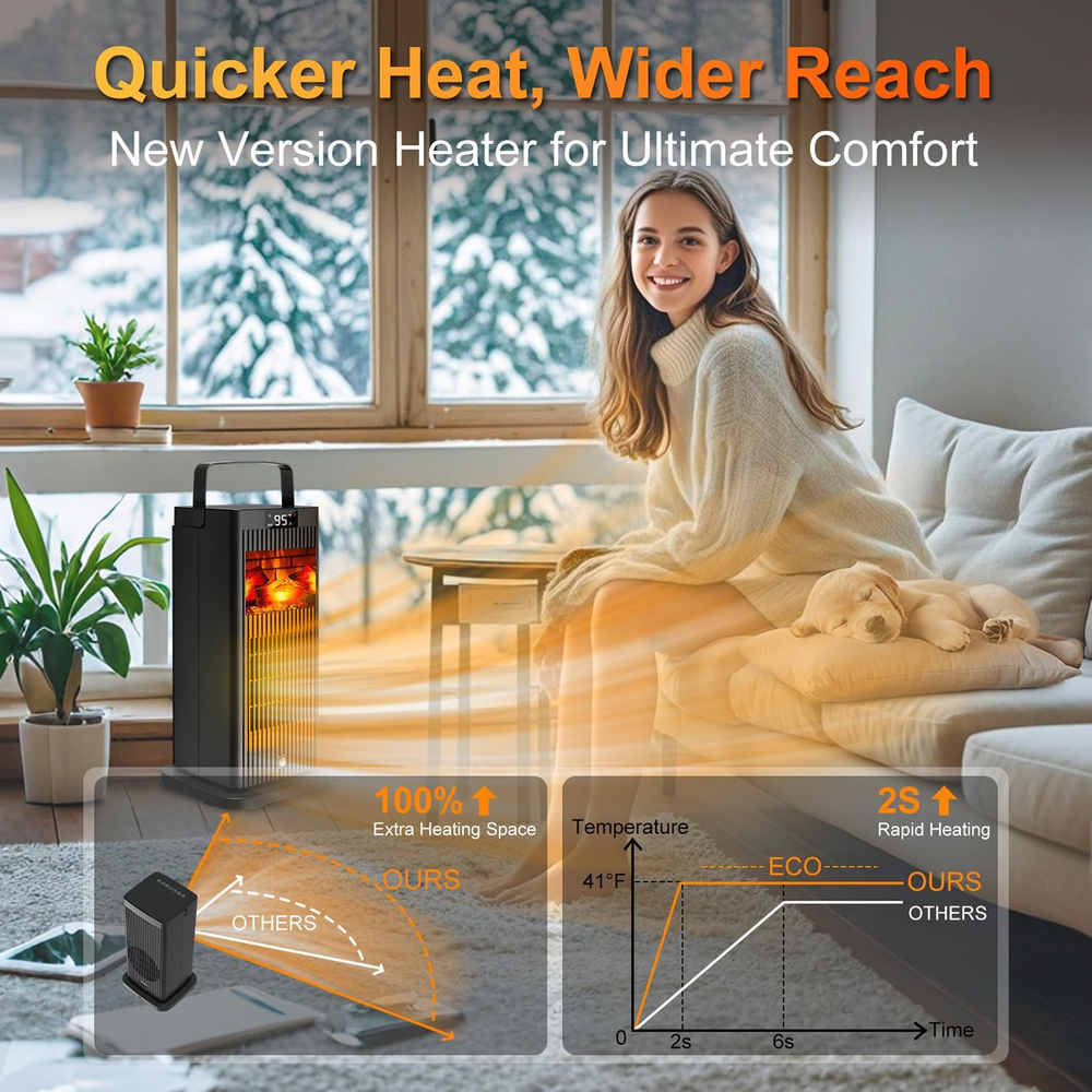 Store New Arrivals Add to Favorite View Feedback Contact Space Heater, 2024 Small Space Heaters for Indoor Use, Oscillating Electric Heater with Infrared Sensor & 3D Flame Effect as Mini Fireplace, 1500W ECO Portable Heater for Office/Bedroom/Home/Garage Description Item model number Space Heaters for Indoor Use Room Type Bedroom, Home Office, Study Room Indoor/Outdoor Usage Indoor Mounting Type Floor Mount Color PACEHEATER-B-003-V Form Factor Tower Power Source Corded Electric Heating Method Convection Item Weight 4.66 pounds Number of Speeds 4 Batteries 1 A batteries required. Max Temperature Setting 95 Degrees Fahrenheit Fuel Type Electric Min Temperature Setting 95 Degrees Fahrenheit Special Feature Overheat Protection, Tip-Over Protection, Manual Thermostat, Oscillating, Portable, On Off Timer Product Dimensions 7.68 x 7.68 x 14.57 inches Heat Output 1500 Watts Burner type Radiant Mini fireplace: This portable heater has a 3D flame and lifelike log design, like a real fireplace. The glass shows a nice fire vista. It adds charm to indoor spaces, offering a soothing allure. Efficient Heating: Space heater has 4 setting including 1500W/750W/fan mode/energy-saving ECO mode. With ECO and infrared human body induction, it cuts costs with max heat, offering warm and comfort. Safety First: ETL-tested heater has a thermostat (41°F-95°F). Overheating protection cuts power when hot. Tip-over safeguard stops accidents, ensure safety&comfort, making it a good heating choice. Effortless Comfort: Space heater has 6-button panel and remote let you control easily. With a carry handle and compact build, it's portable. The 1-12 timer and 60° oscillation enhance convenience. Gift of Perfection: This space heater features captivating 3D flames. It brings warmth to spaces and loved ones' hearts. this heater creates cherished memories of care and warmth. Product Description Reaching Out with Warmth at Your Fingertips with This Space Heaters for Indoor Use Cater to Different Needs with This Multi-Functional Space Heater The 2024 Inviting Space Heater: A Winter Gift That Warms the Heart ABOUT US We offer the best prices around on high quality products. Our E-store includes media such as books, movies, music and games while offering electronics, toys, sporting apparel, clothing, tools, general home, garden items and more. SHIPPING We are always working hard to ensure your package arrives as soon as possible. Please understand that some factors like weather, high postal traffic, and the performance of shipping companies are outside of our control. We offer free shipping to the lower 48 states and ship within 2 business days of payment, usually sooner. We do not accept P.O. Boxes. Please provide a physical address. For shipping outside of the continental USA, we only use eBay's Global Shipping Program.The item is shipped to KY and then sent to the rest of the world. International customers are responsible for all duties and taxes. Continue to check out in order to calculate costs for shipping the item to your country. Messages regarding eBay's Global Shipping Program MUST be directed at eBay EXCLUSIVELY. RETURNS We offer a 30-Day Return Policy on items which you are not completely satisfied with. You have the option for a full-refund or an exchange of the item. No returns are available on items shipped outside of the USA. PAYMENT We accept PayPal. CONTACT US This page content is yet to come Please ad us to your favorite seller and visit again later Thank You CUSTOMER SATISFACTION We try our very best to make sure every customer is completely satisfied. If there's a problem, message us! We're happy to help. WE ACCEPT Copyright © 2021 AutoDS. | All Rights Reserved