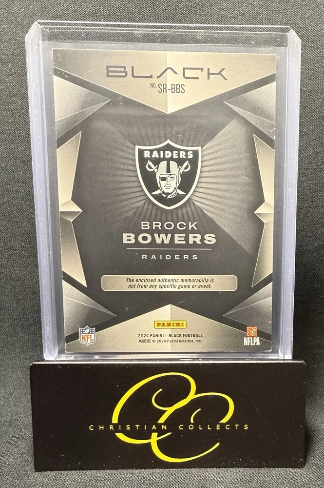 Fresh Pull!!! This is a rare 2024 Panini Black FOTL Brock Bowers FULL Nike Swoosh Rookie Patch Trading Card, with a print run of 8/10. The card features a near mint or better condition type, and is a National Football League (NFL) League product. The card is from the Las Vegas Raiders team, and has a card number of SR-BBS. The card is a sizeable memorabilia full nike swoosh parallel/variety, and was manufactured by Panini in the year 2024. It is a football sports trading card, and is part of the 2024 Panini Black FOTL set. The card is a great addition to any sports trading card collection, and is sure to be a valuable item for any card collector.