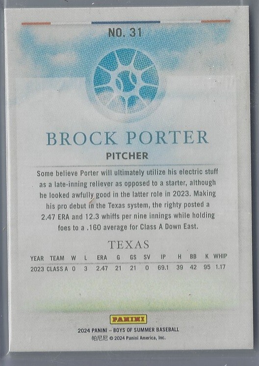Home2024 Panini Boys of Summer Brock Porter #31 Red RC 149