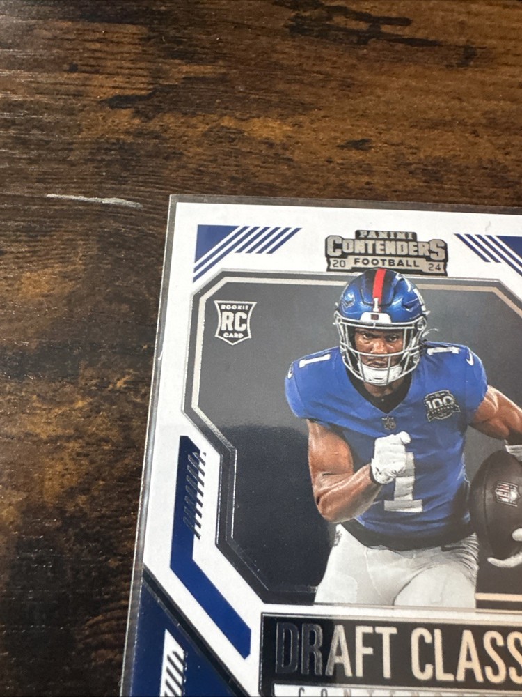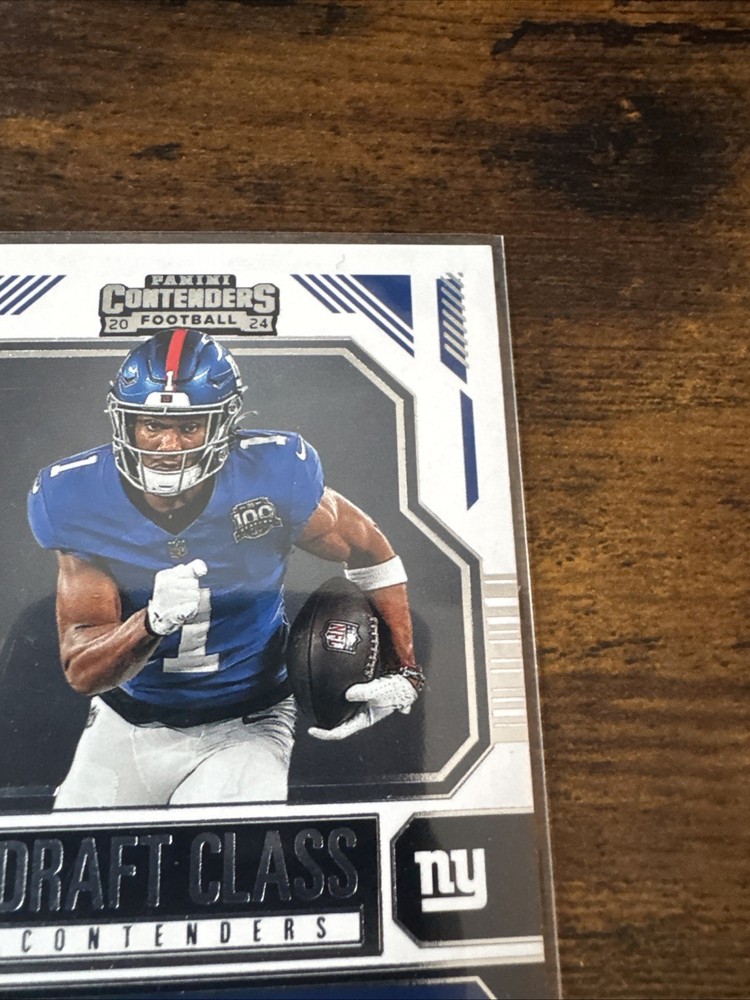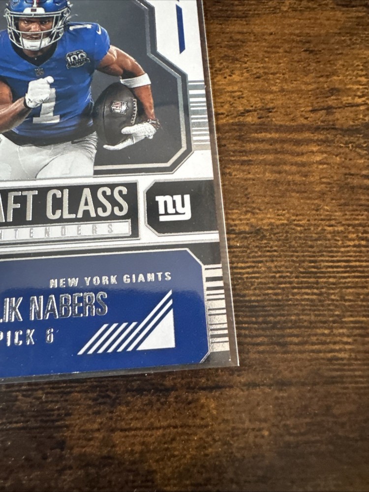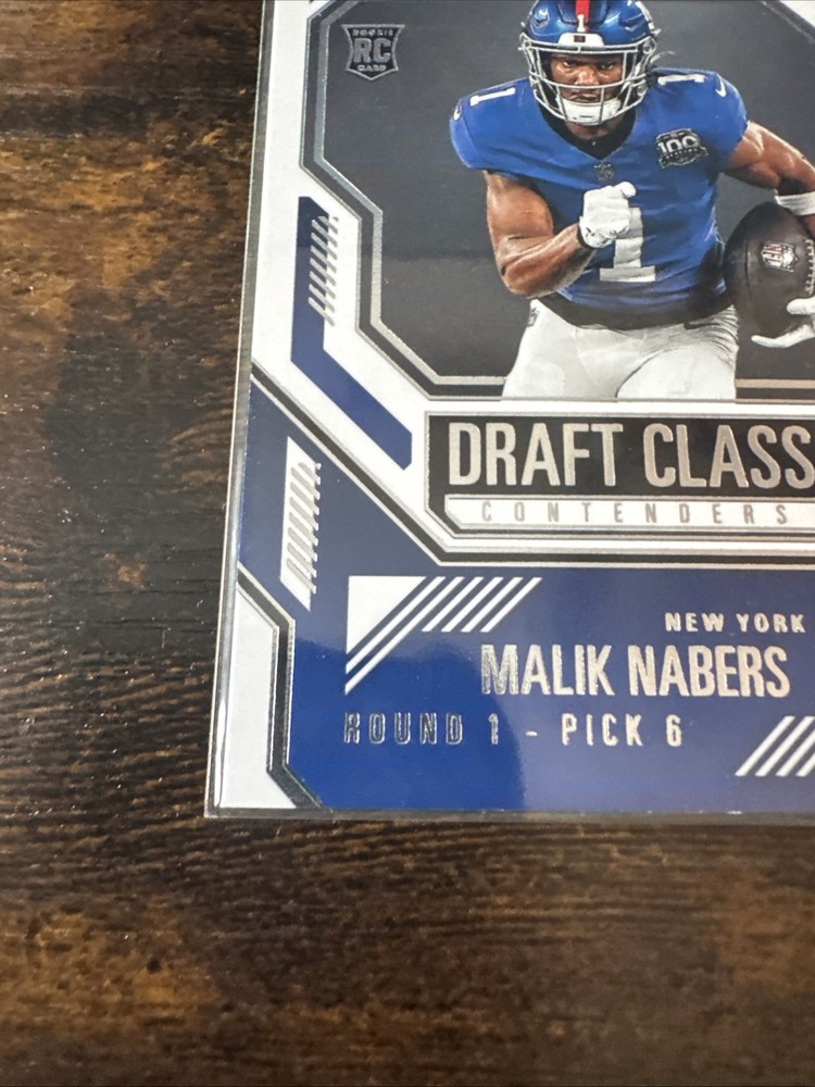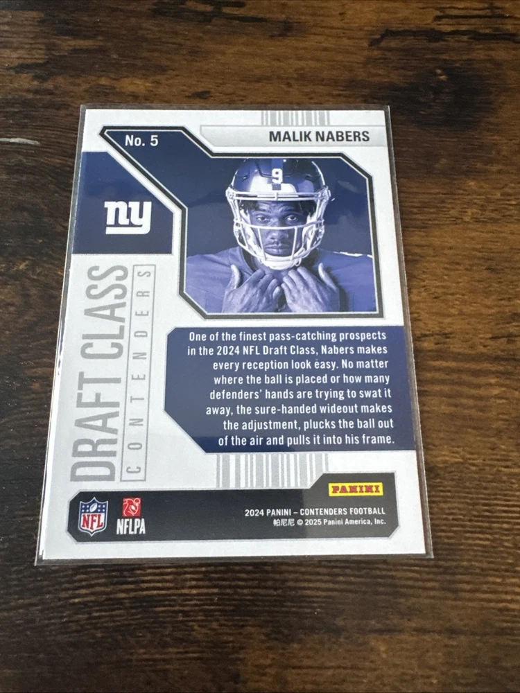 Insert Set:Draft Class ContendersTeam:New York GiantsPlayer/Athlete:Malik NabersCard Condition:Near mint or betterCard Number:5Sport:FootballSeason:2024Manufacturer:PaniniSet:2024 Panini ContendersParallel/Variety:[Base]Features:Rookie, InsertType:Sports Trading CardLeague:National Football League (NFL)