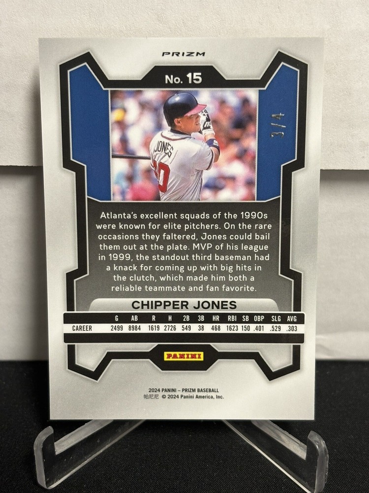 2024 Panini Prizm Baseball Chipper Jones Gold Pandora Prizm /4 SSP #15 Braves. Condition is Ungraded. Shipped with USPS Ground Advantage.