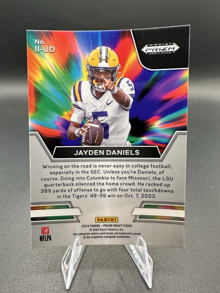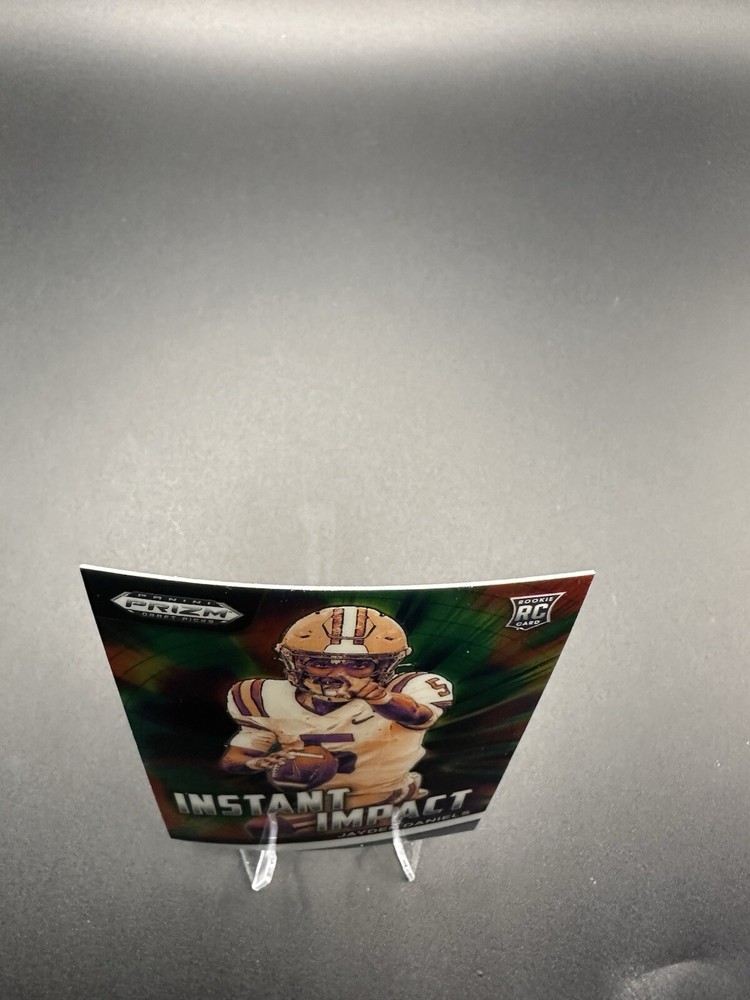 Team:LSU Tigers, Washington CommandersFeatures:Insert, RookieSport:FootballType:Sports Trading CardInsert Set:Instant ImpactCard Number:II-JDManufacturer:PaniniPlayer/Athlete:Jayden DanielsAutographed:NoSet:2024 Prizm Draft PicksYear Manufactured:2024Season:2024Parallel/Variety:PrizmLeague:National Collegiate Athletic Association (NCAA), National Football League (NFL)